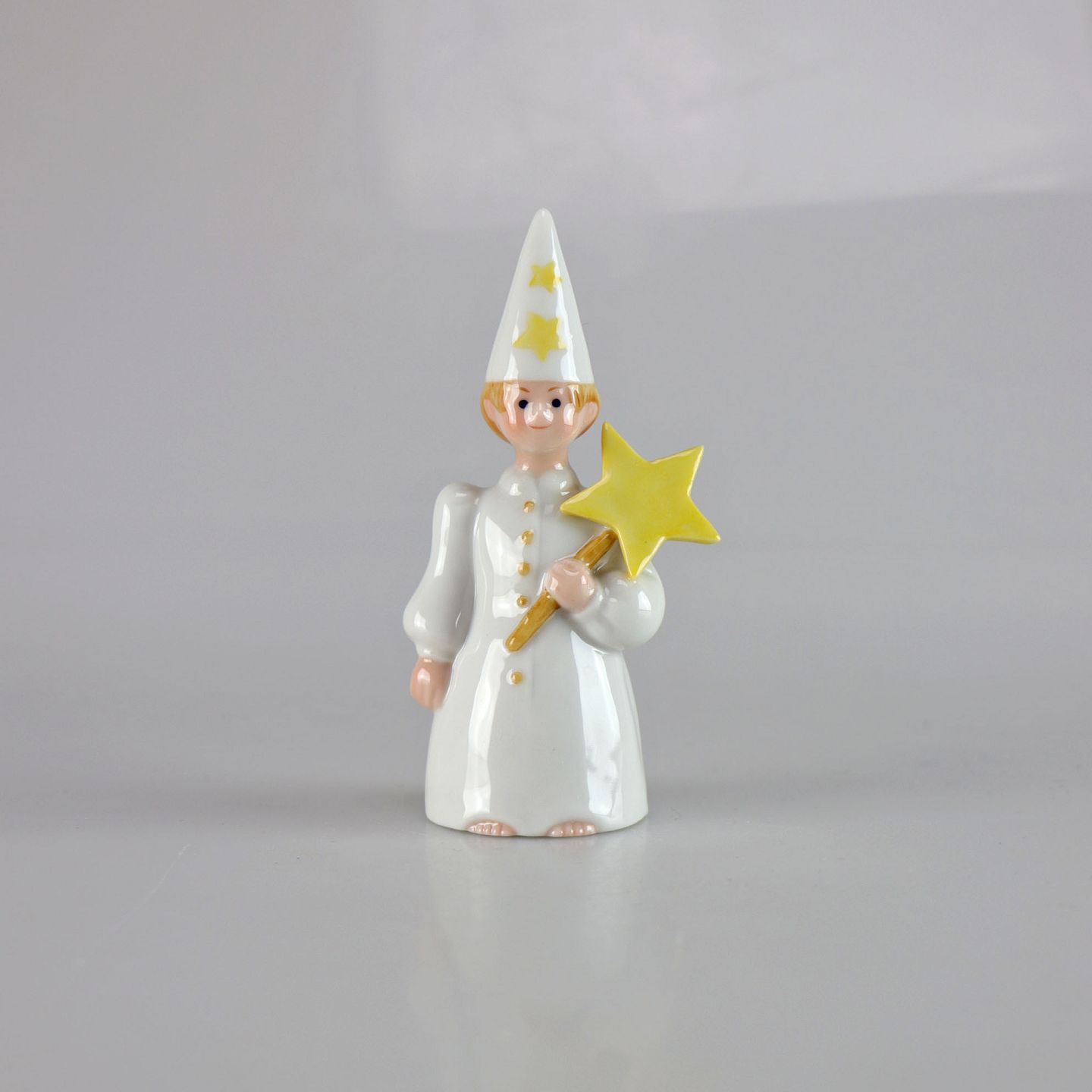 Kongelig porcelænsfigur af dreng med spidshat og stjerne i hånden