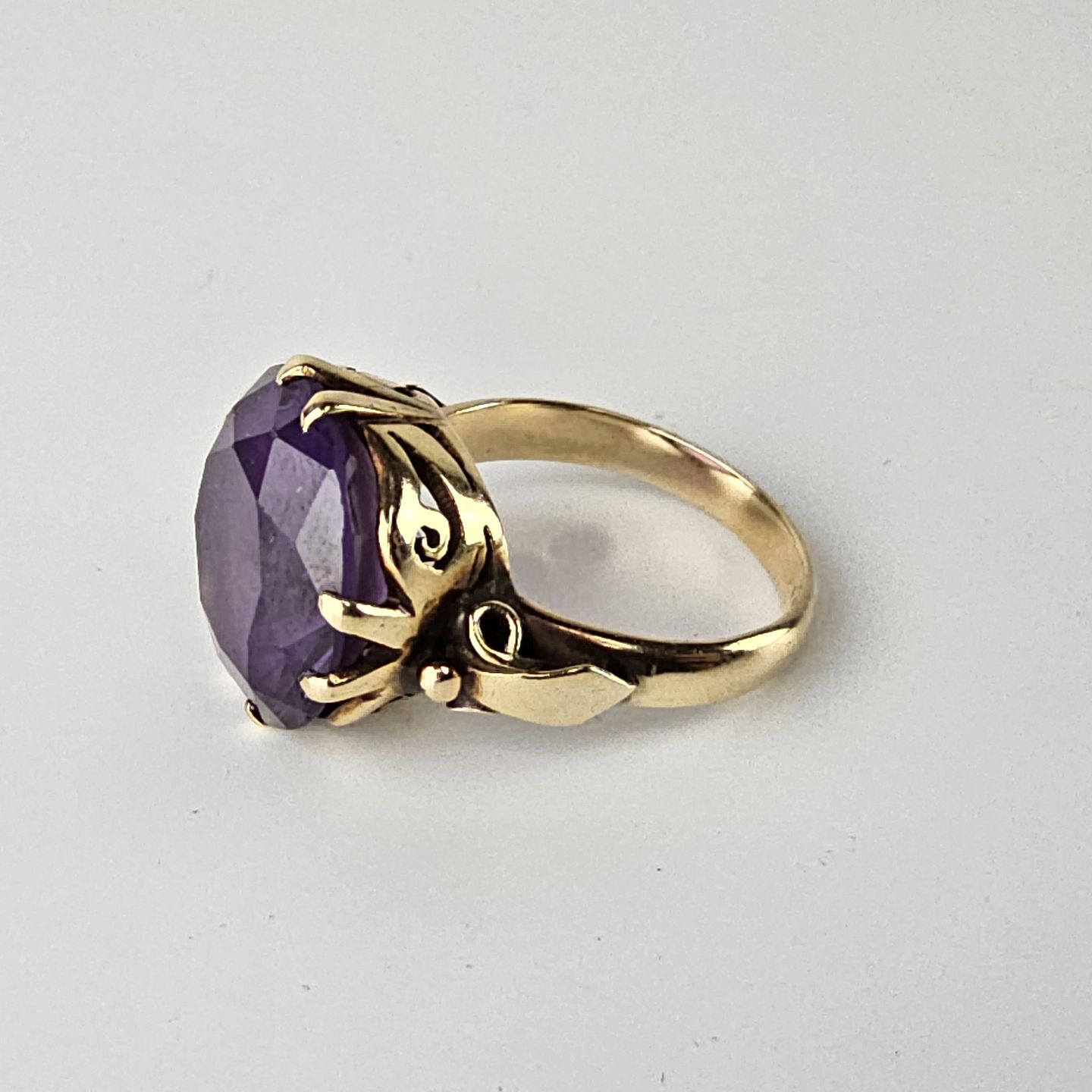 Guldring i 14 karat med amethyststen. Størrelse 54
