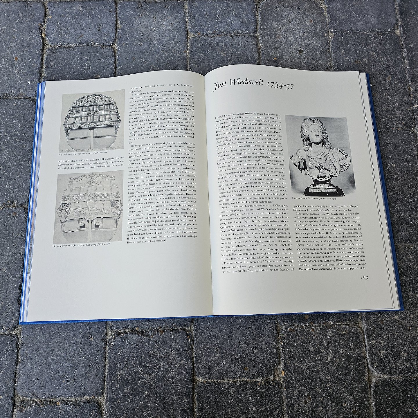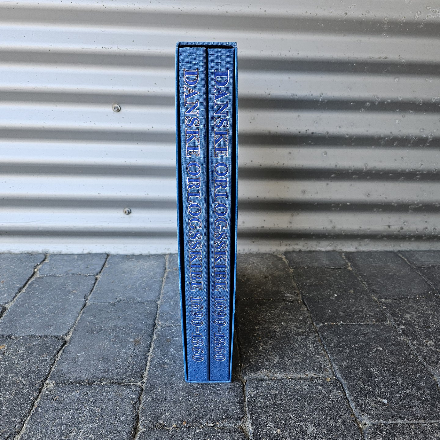 Sæt af to bøger i boks indbundet i blåt hellærred