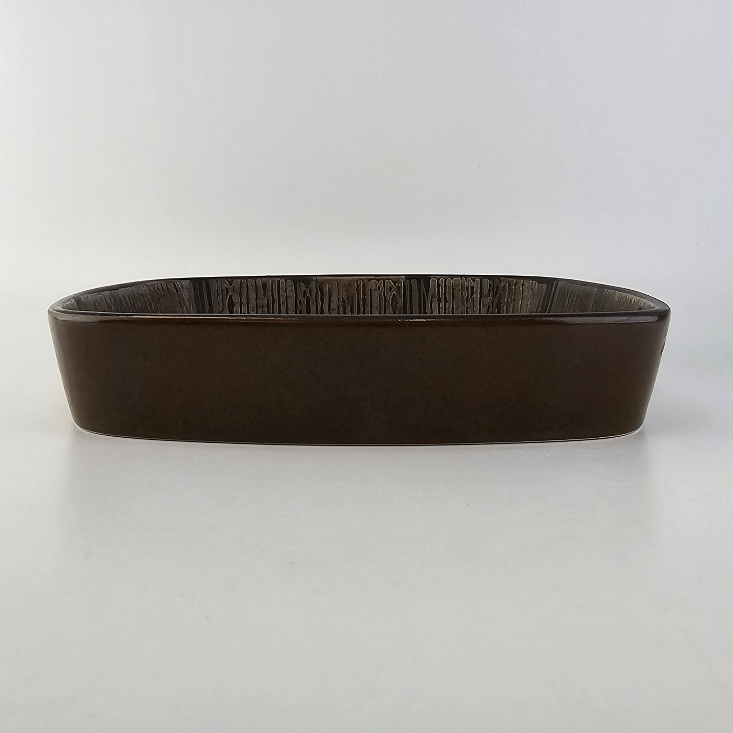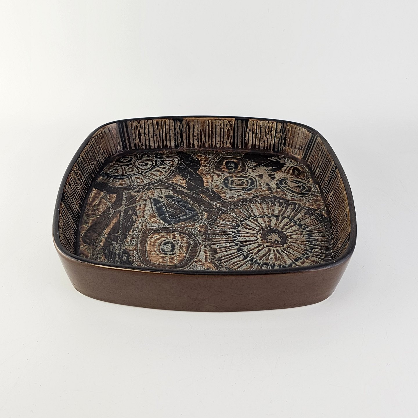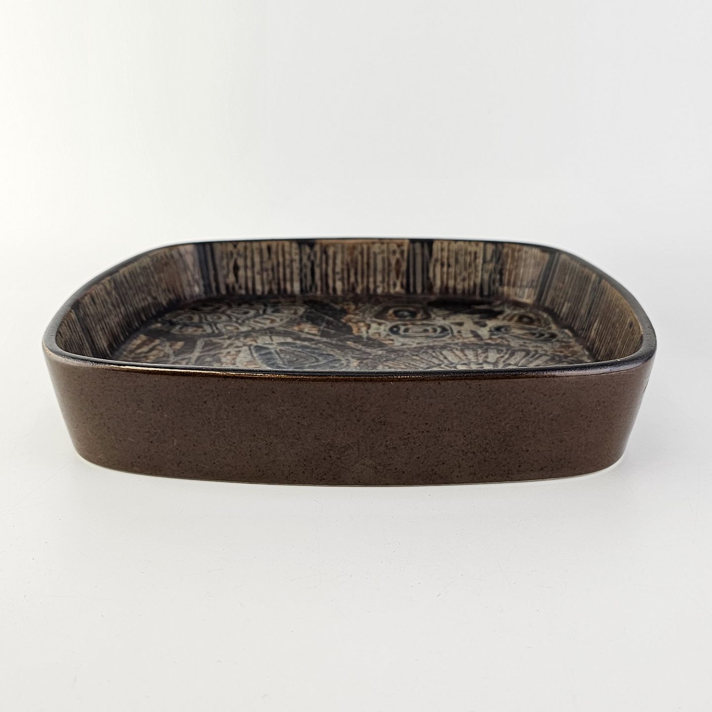 Firkantet skål i fajance fra Baca serien med mønster i brune nuancer