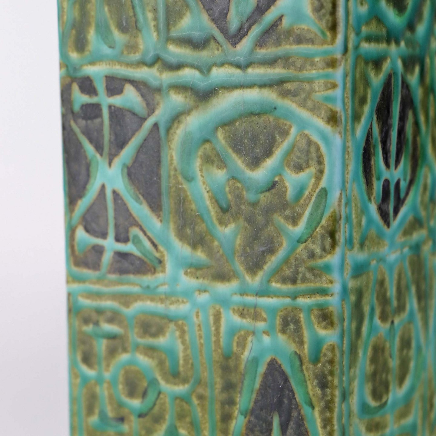 Lampefod i grøn fajance med topplade i rustik messing. Lampen er fra Baca serien og dekoreret med abstrakt mønster. Nr. 712/3259