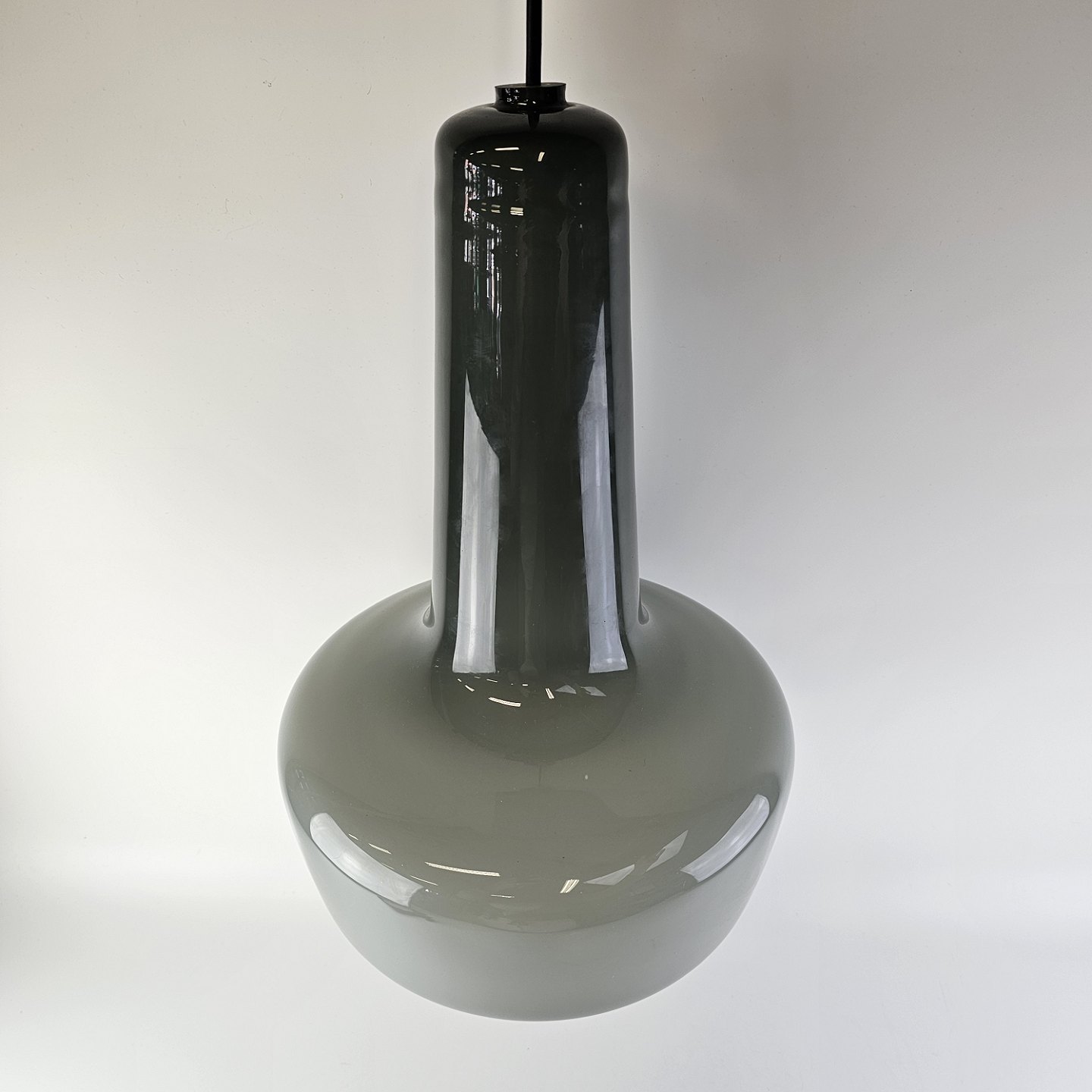 Pendel i opal glas, grå by ydersiden og hvid på indersiden