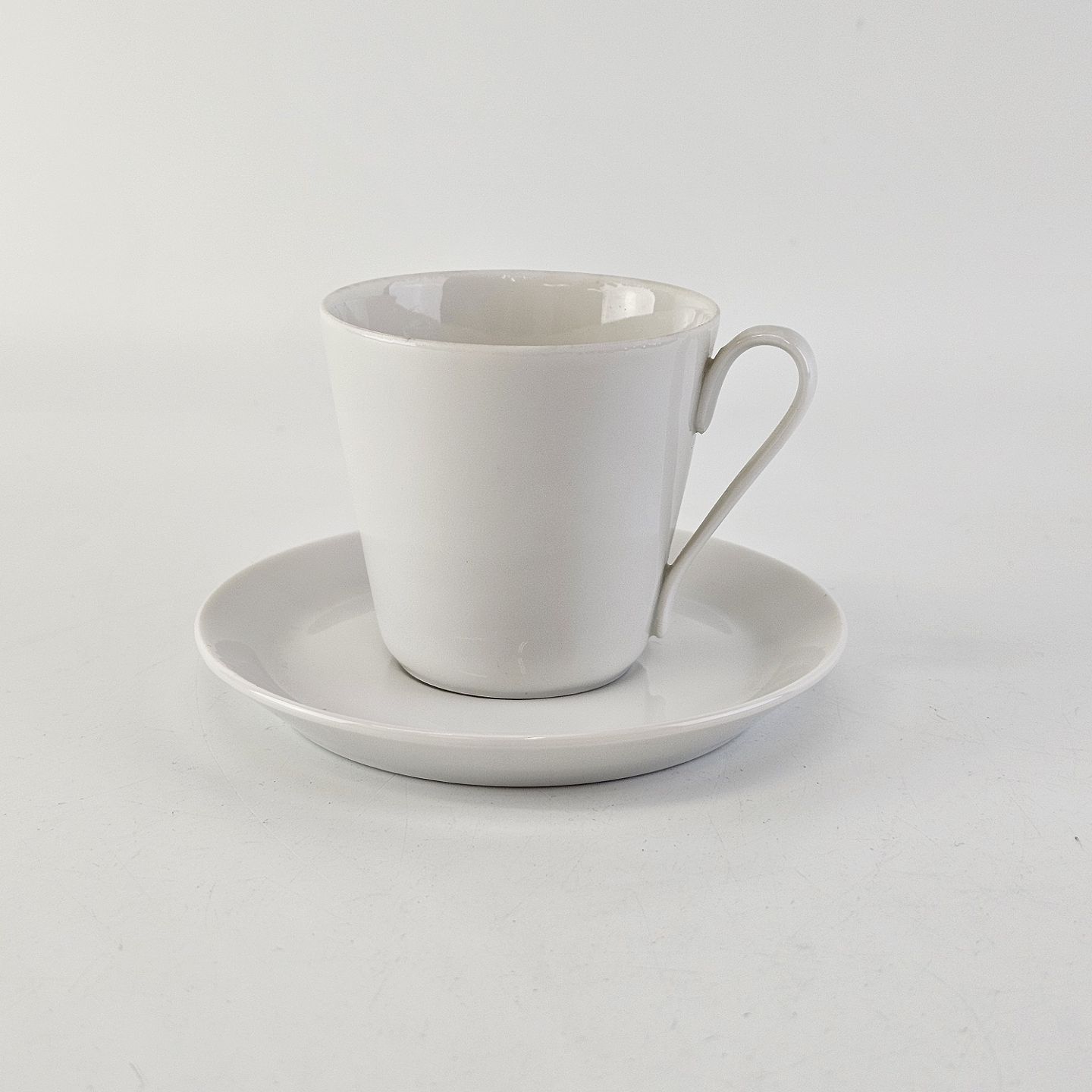 Mokkakop med underkop i porcelæn fra stellet Hvid Glasurfarvet