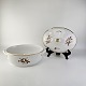 Stel i glat hvidt porcelæn dekoreret med brune roser og guldbort