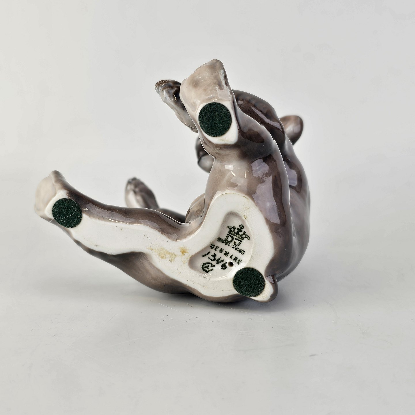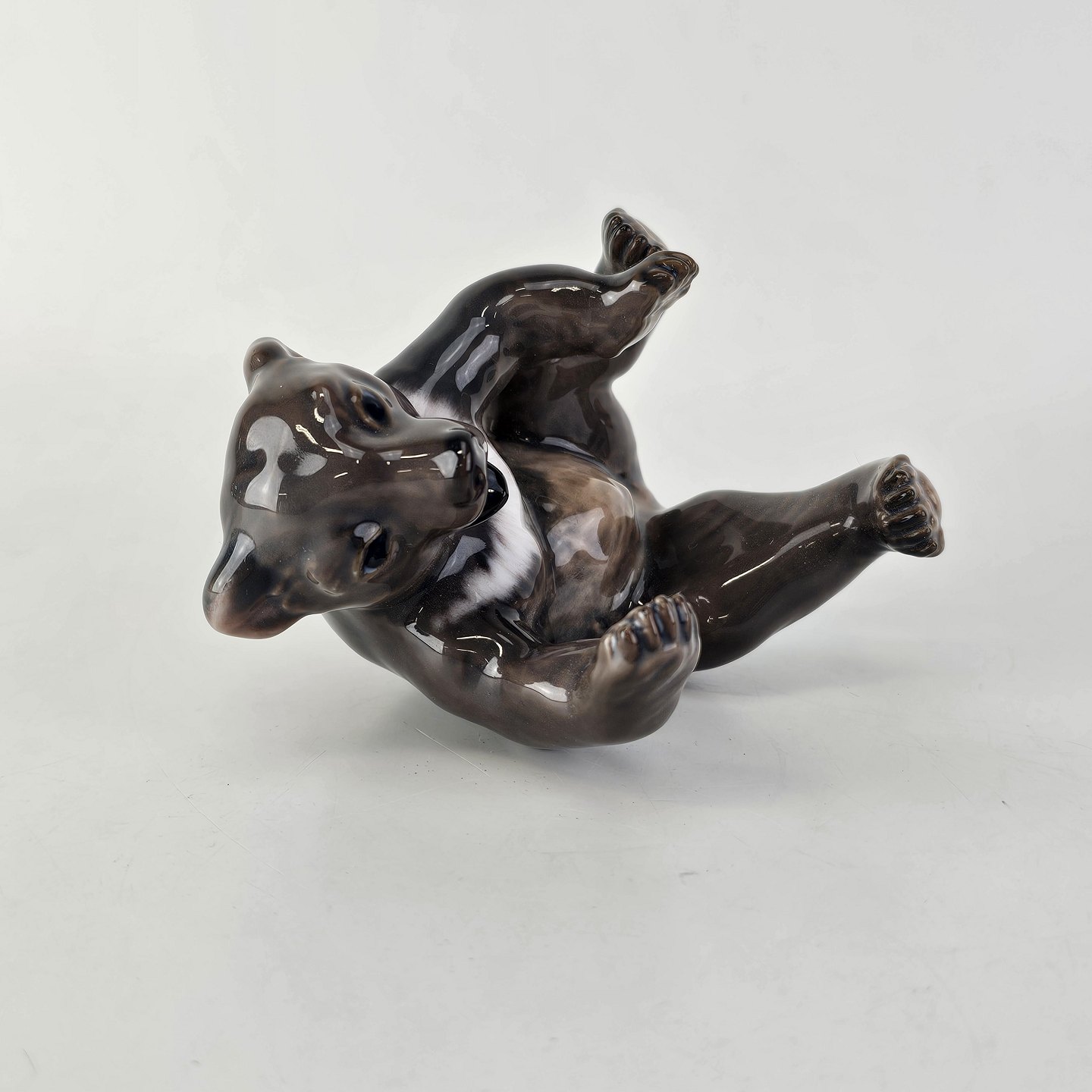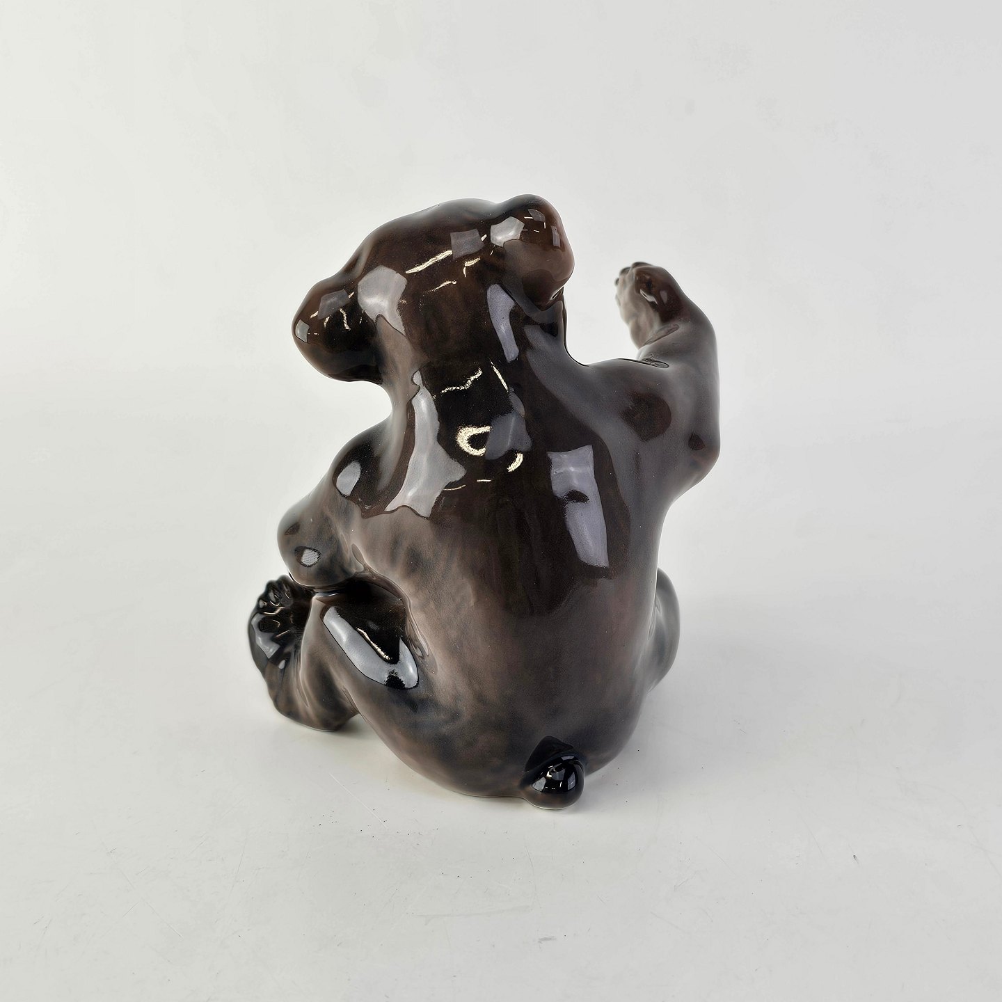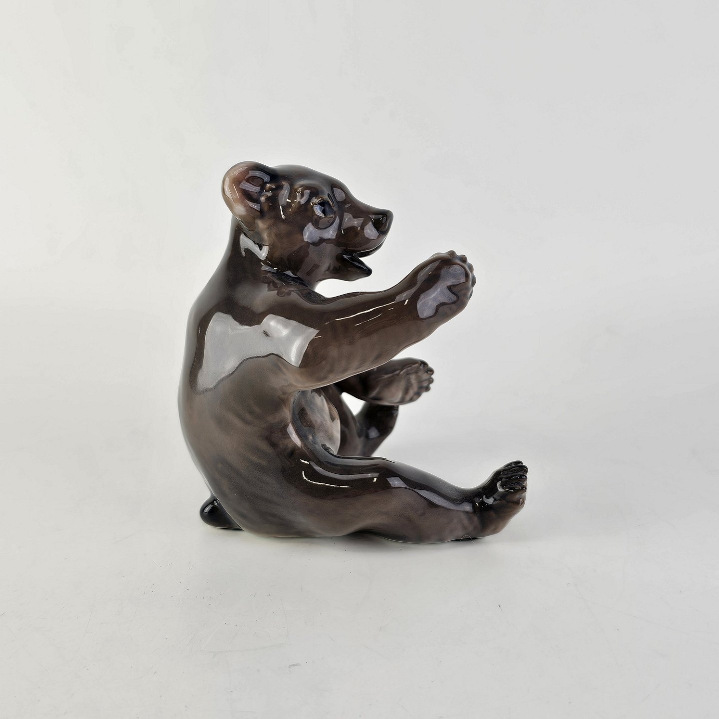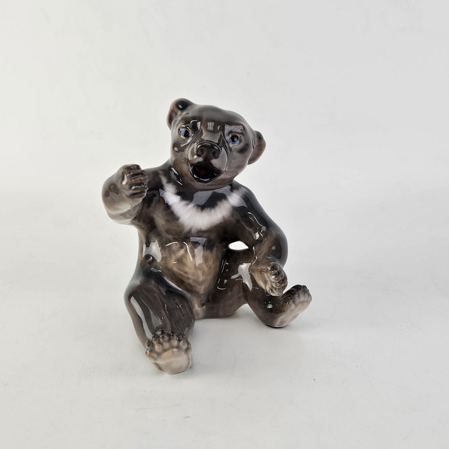 Figur i porcelæn med motiv af en siddende bjørn