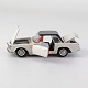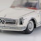 Hvid Mercedes-Benz 280 SL legetøjsbil med sort tag i lakeret metal med gummi hjul. Motorhjelm, bagklap og begge frontdører kan åbnes.