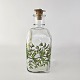 Karaffel i klart glas med korkprop fra serien Brændevins Amatøren, dekoreret med en gren af prikbladet perikum blomster og teksten Hypericum Perforatum L.