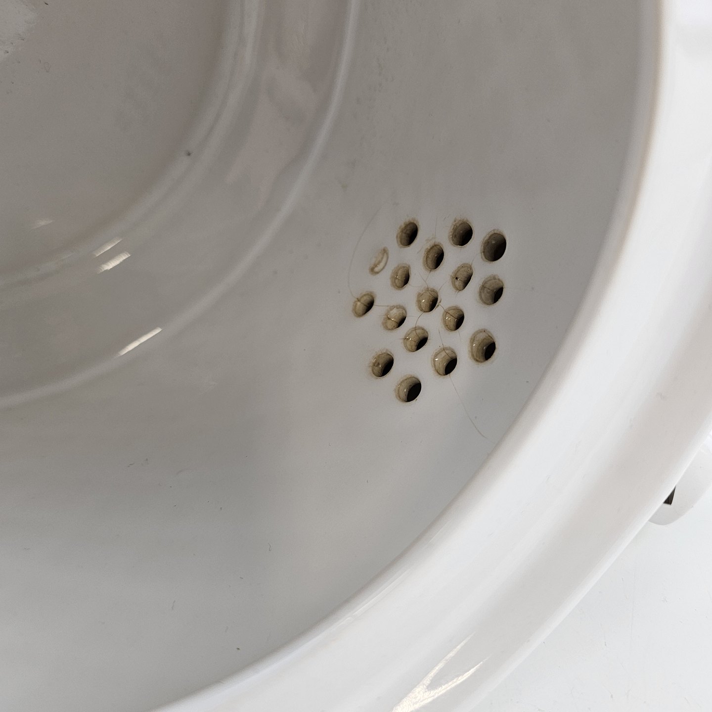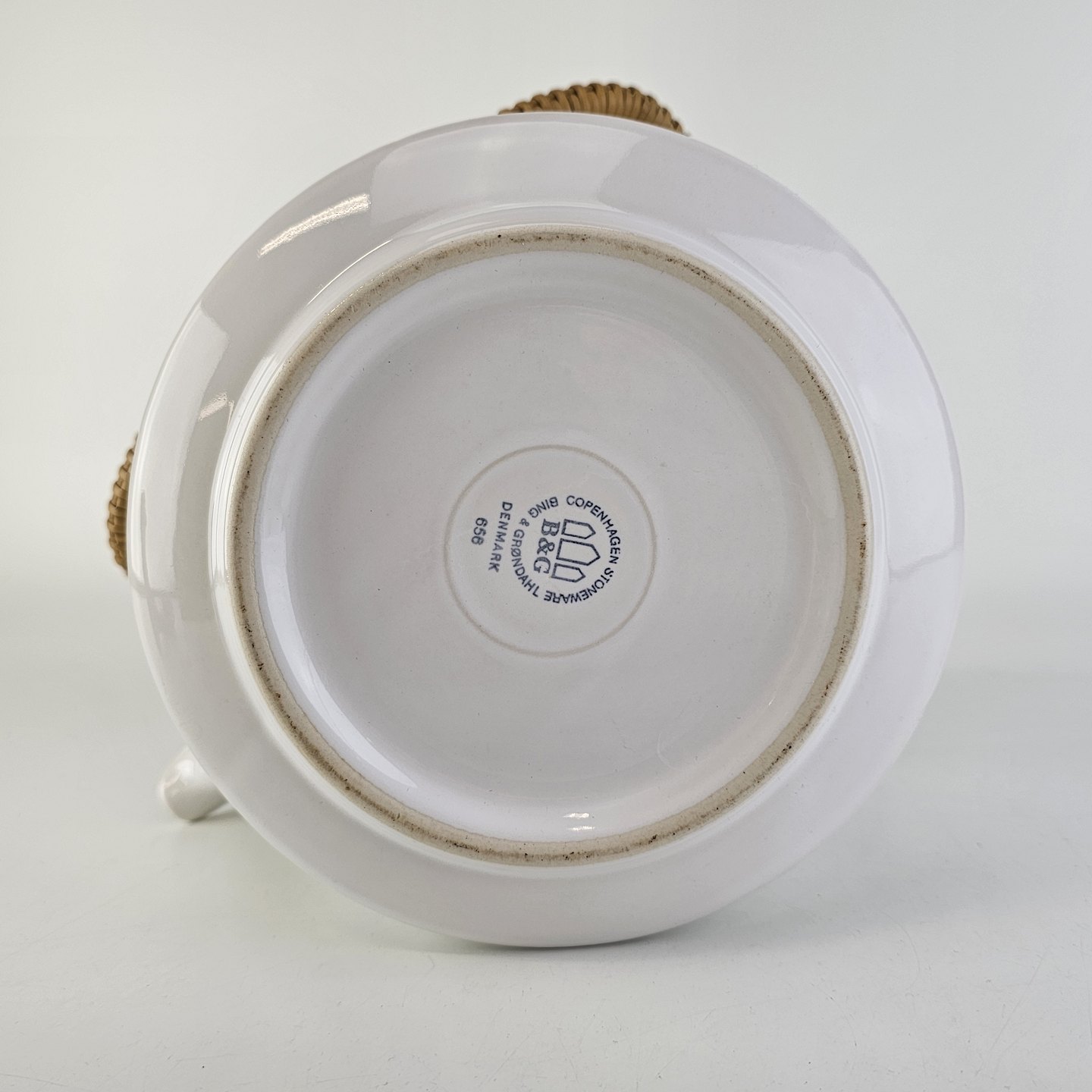 Tekande i stentøj med hank i messing omgivet af naturflet fra stellet Cordial Hvid Palet