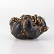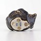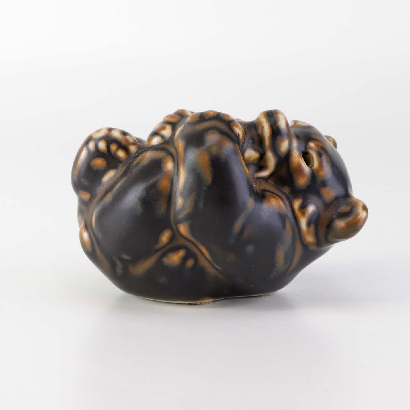 Figur i brunglaseret stentøj med motiv af liggende bjørneunge med pote i munden. Nr. 21434