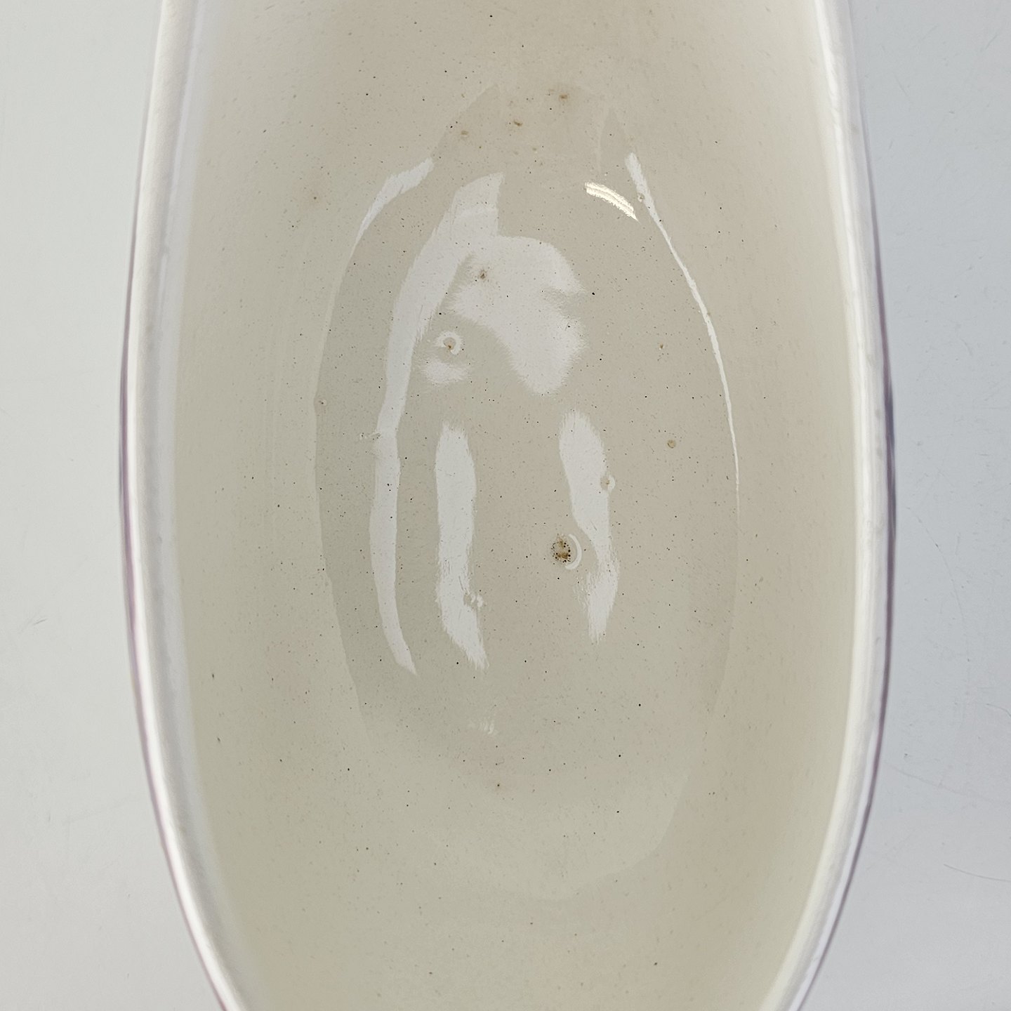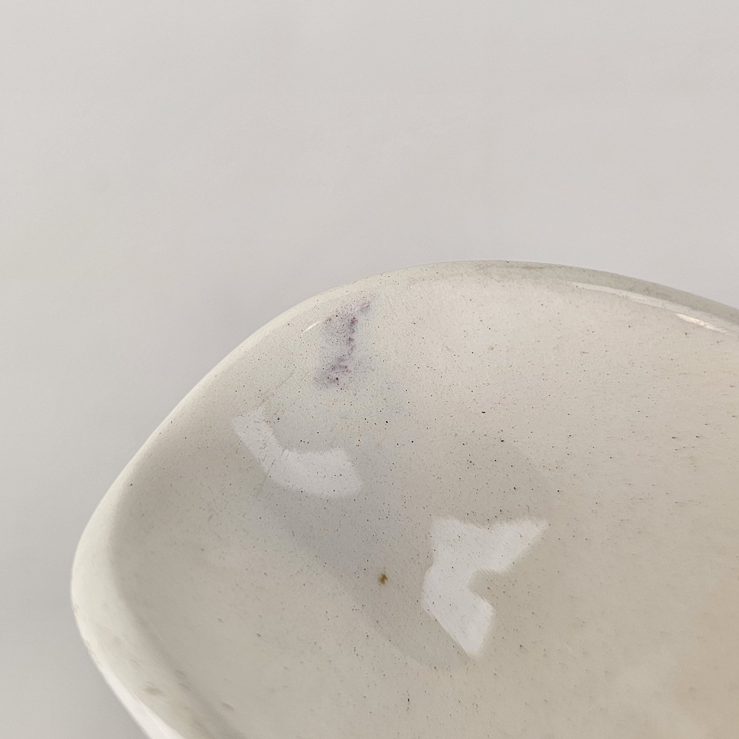Stellet er i hvid fajance og håndmalet med dekoration af blå violer