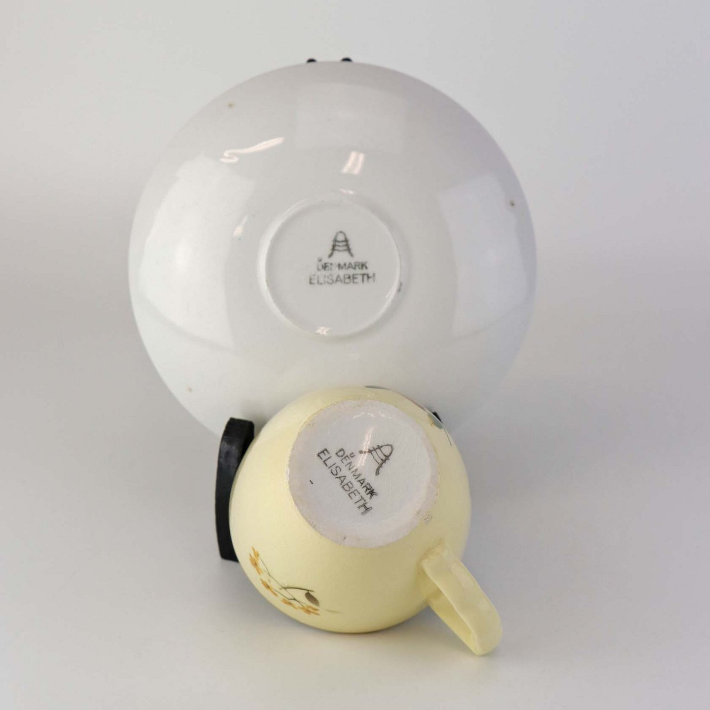 Kaffekop med underkop i fajance fra stellet Elisabeth.