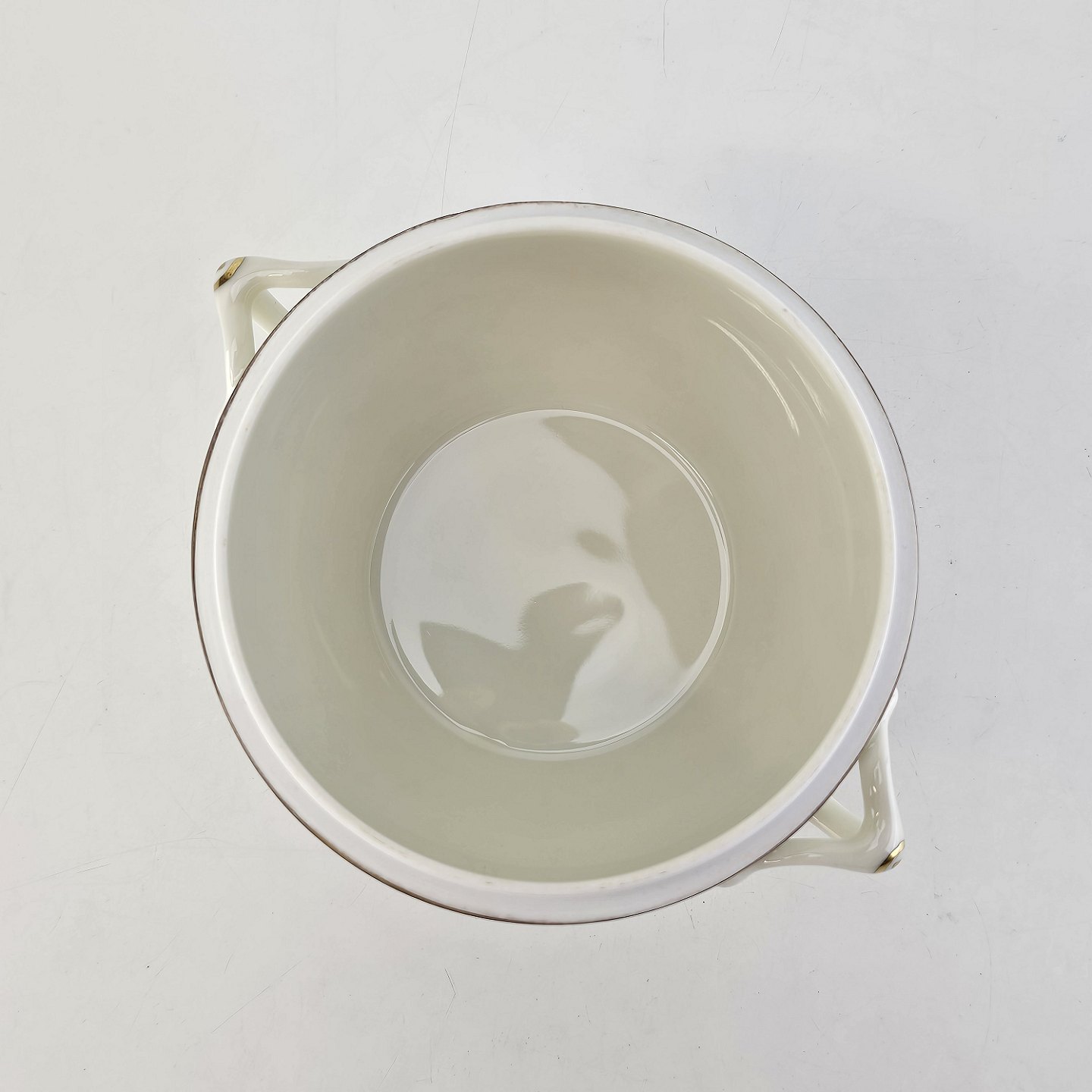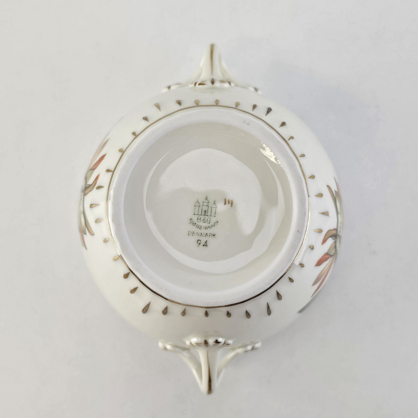 Kaktus er cremefarvet porcelæn i skælform, dekoreret med kaktusblomster og guldkant