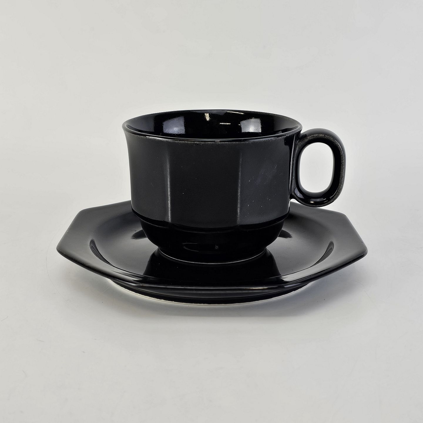 Stellet er i glaseret, kantet stentøj og findes i både sort og hvid