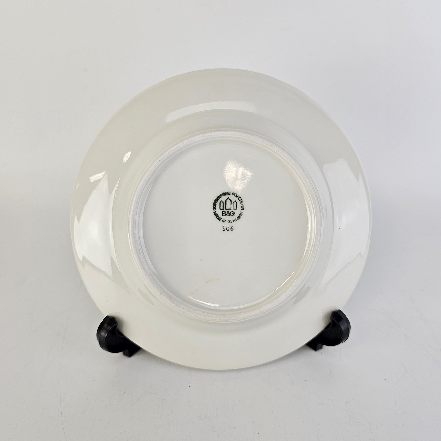 Balder er cremefarvet porcelæn i skælform, dekoreret med hyben og guldkant.