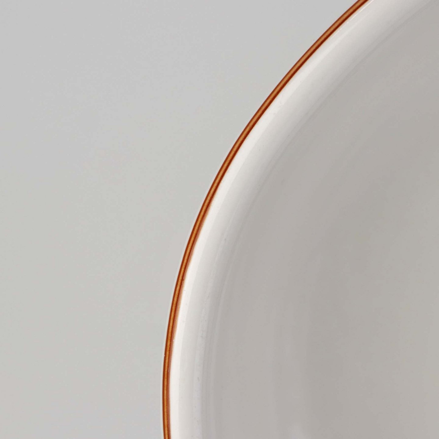 Fremstår med med mindre brugsspor på topkanten og yderside samt overfladiske ridser i fadets bund.