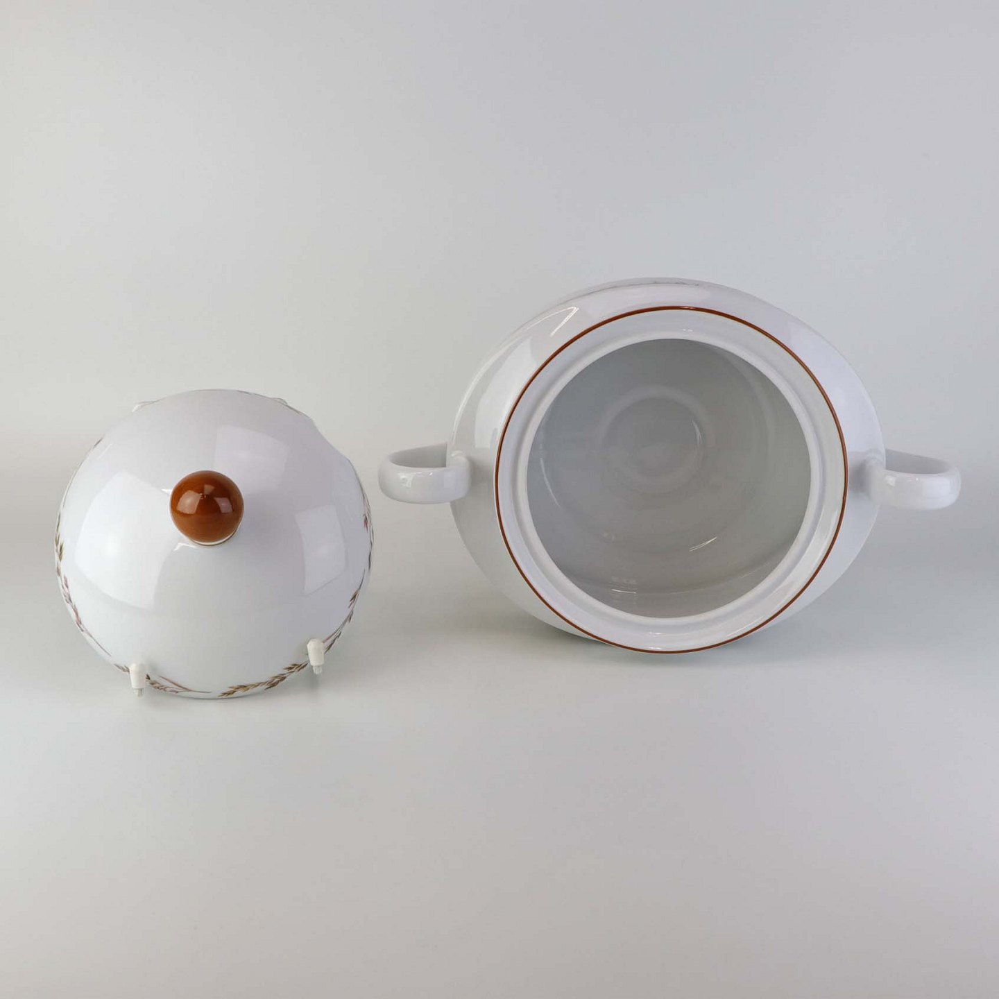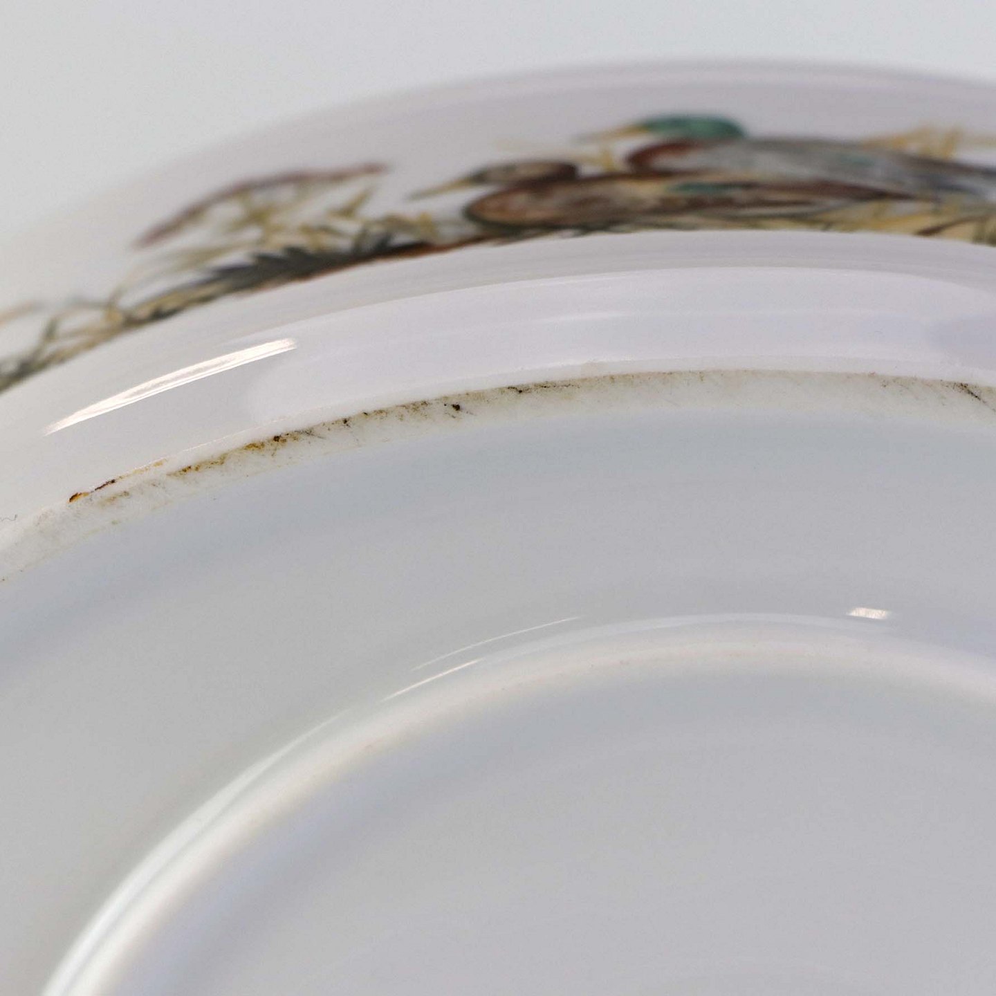 Ragout fad i porcelæn med låg og hanke, som er dekoreret med motiv af ænder fra stellet Jagtstel.