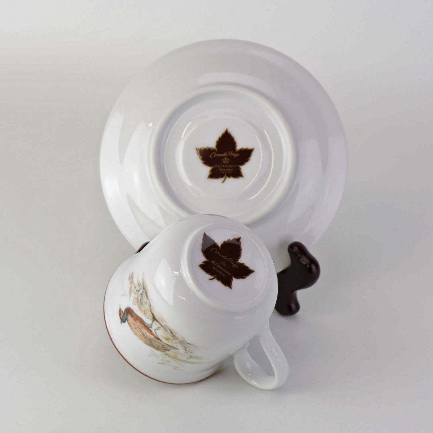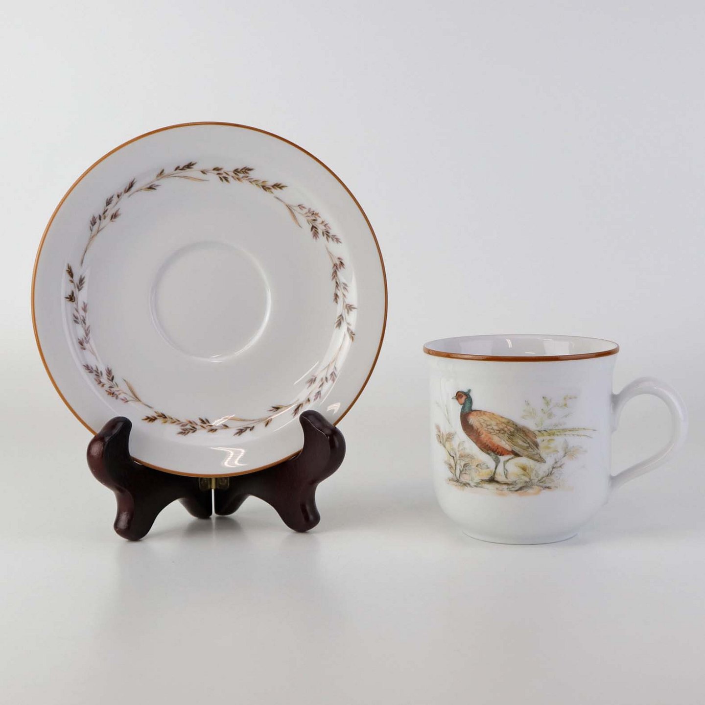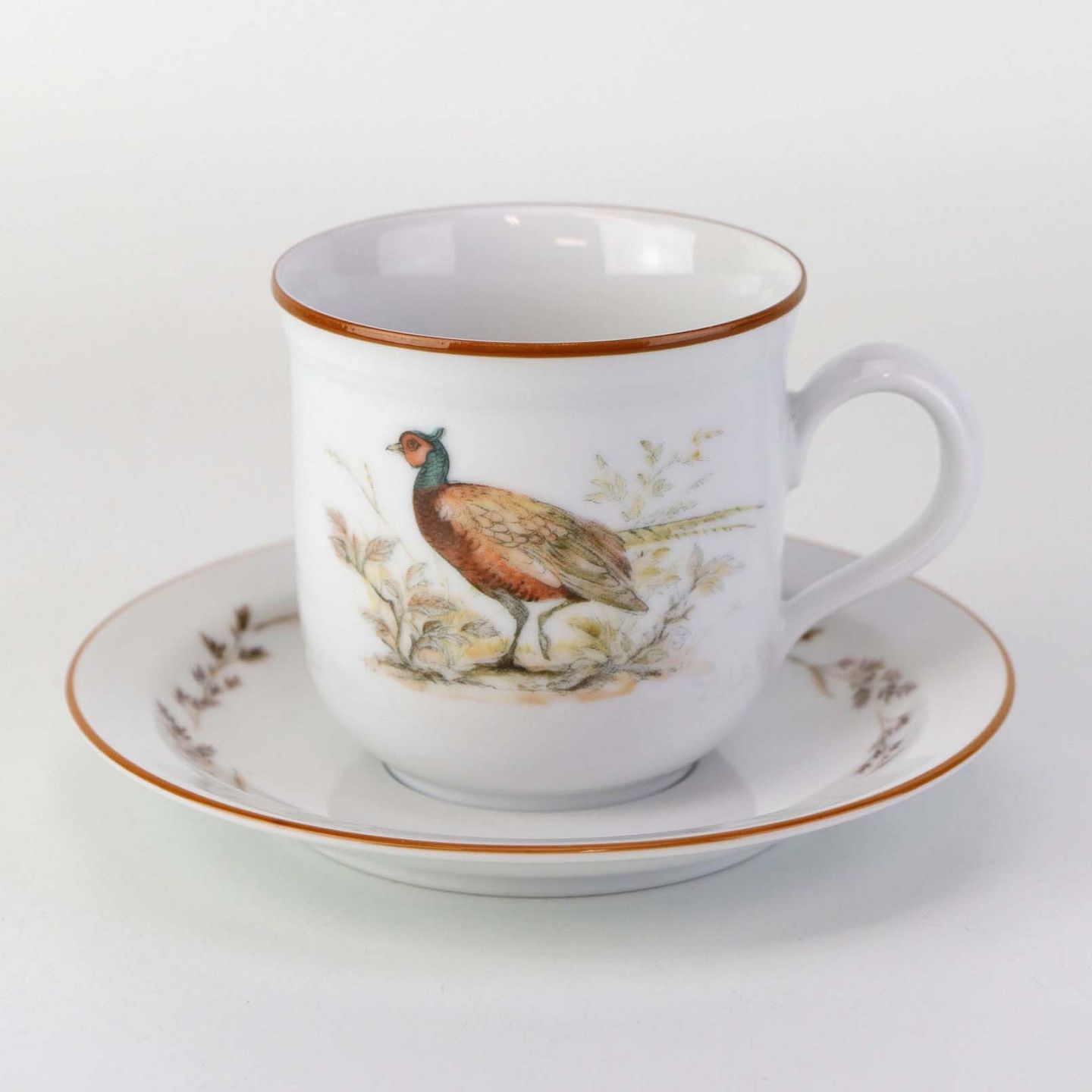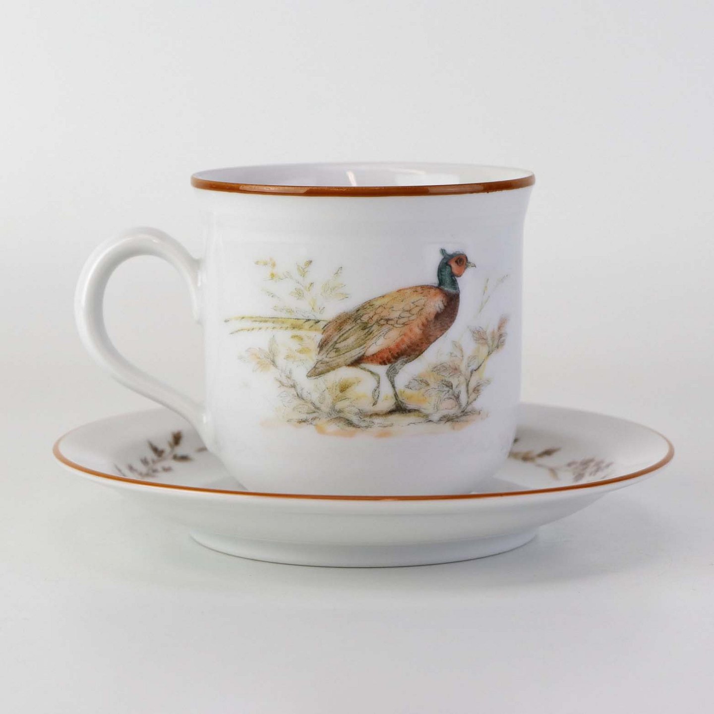 Kaffekop med underkop i porcelæn og dekoration af en fasan fra stellet Jagtstel.