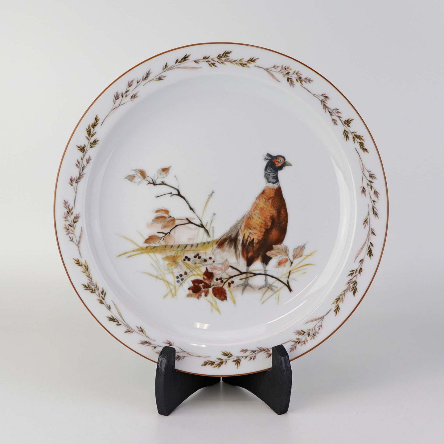 Flad middagstallerken i porcelæn med motiv af en fasan fra stellet Jagtstel.
