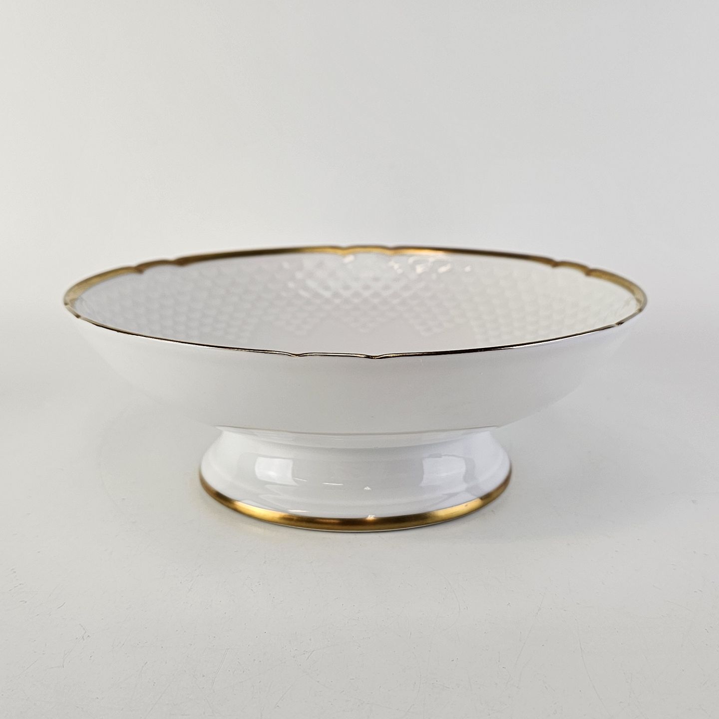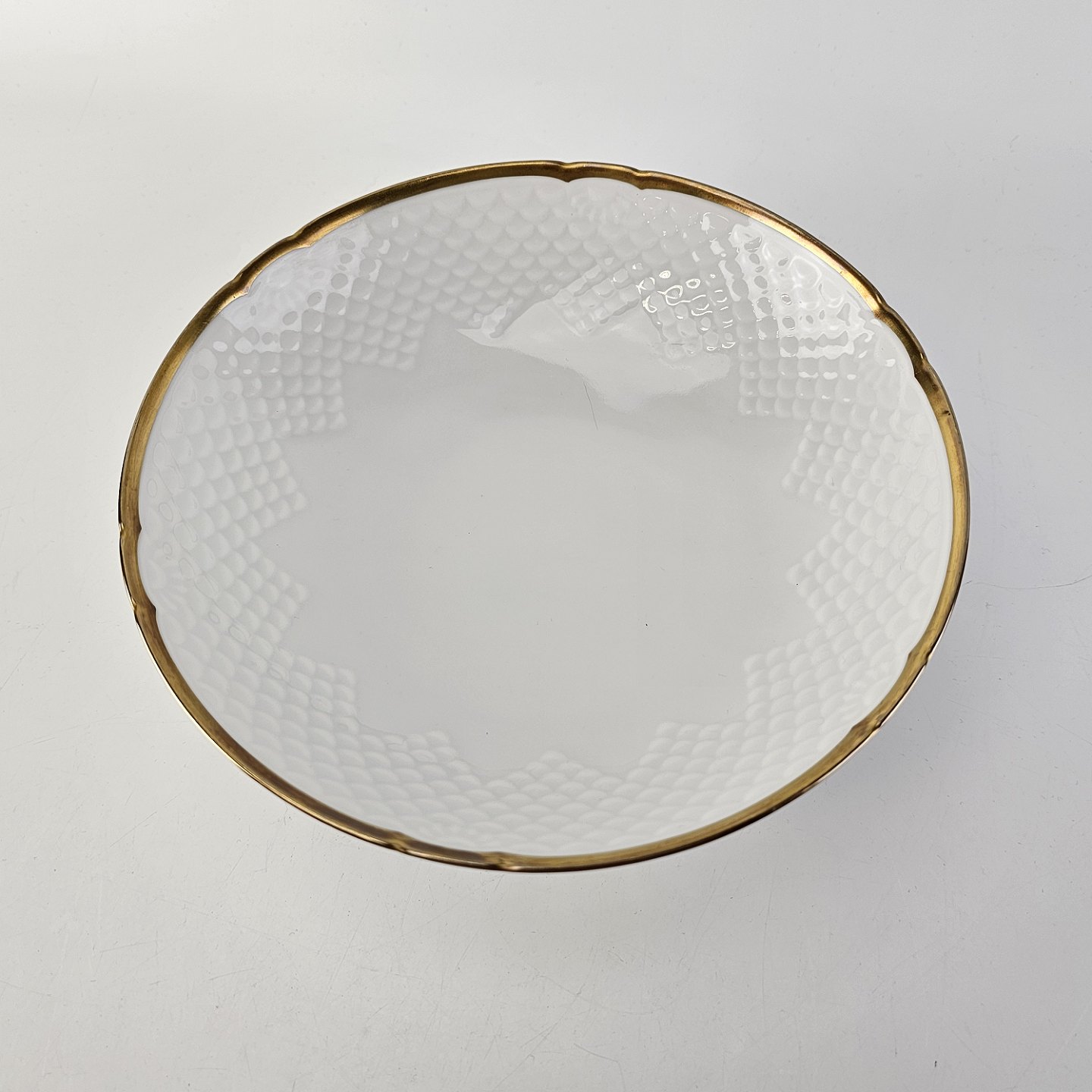 Hostrup er hvidt porcelæn i skælform med guldkant