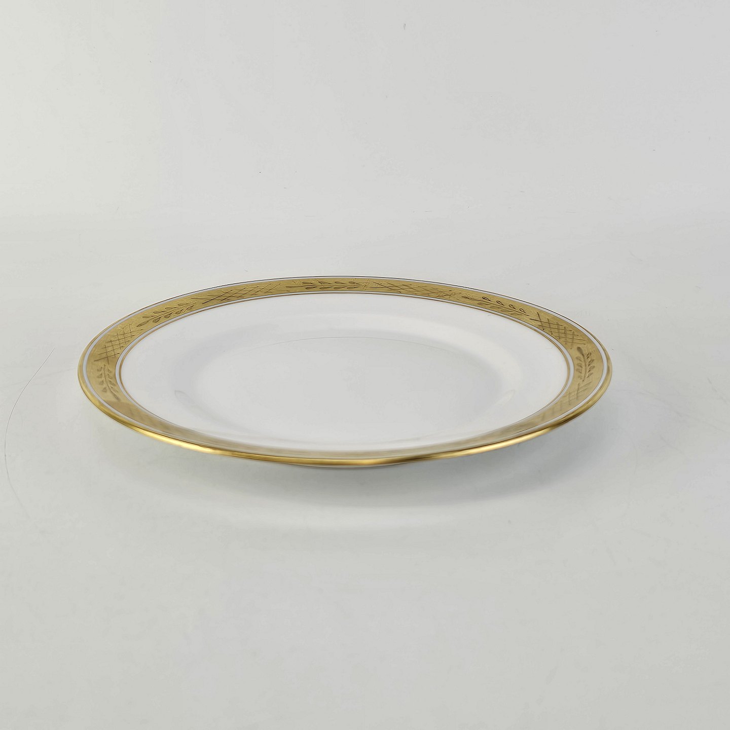 Stel nr. 607 er i hvidt porcelæn og har en guldkant med bladværk