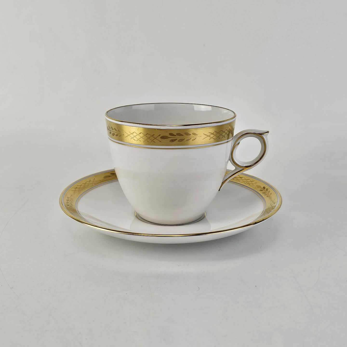 Stel nr. 607 er i hvidt porcelæn og har en guldkant med bladværk