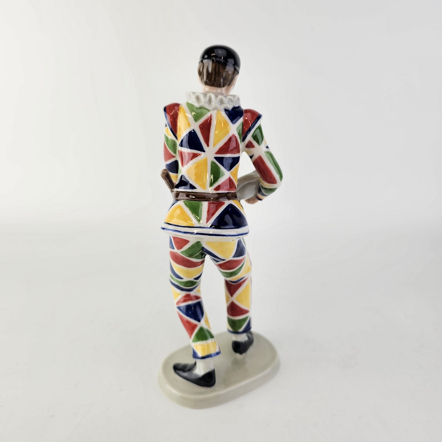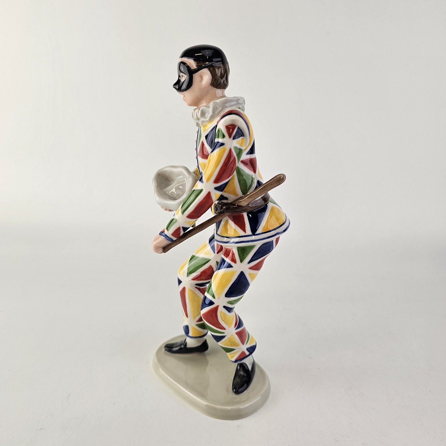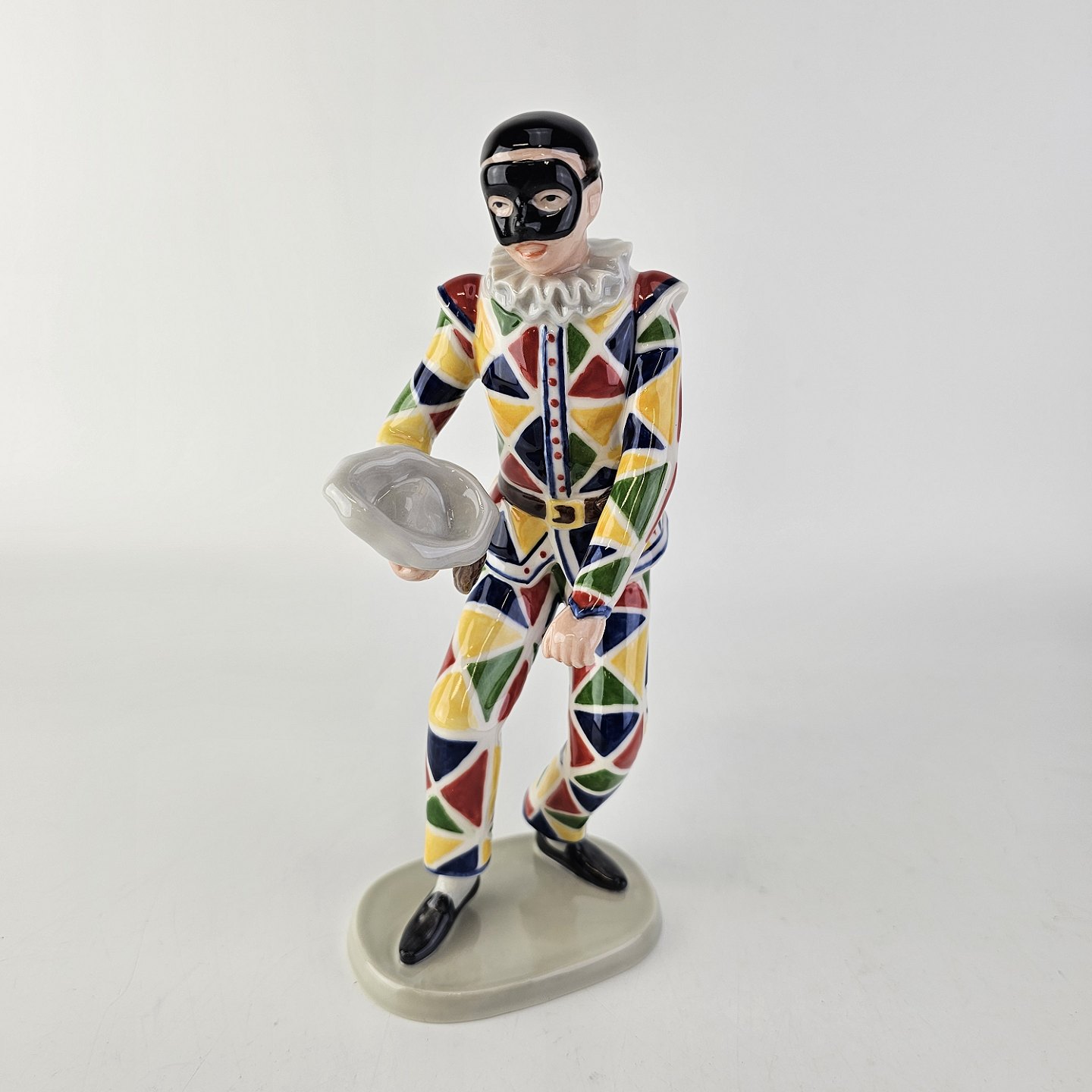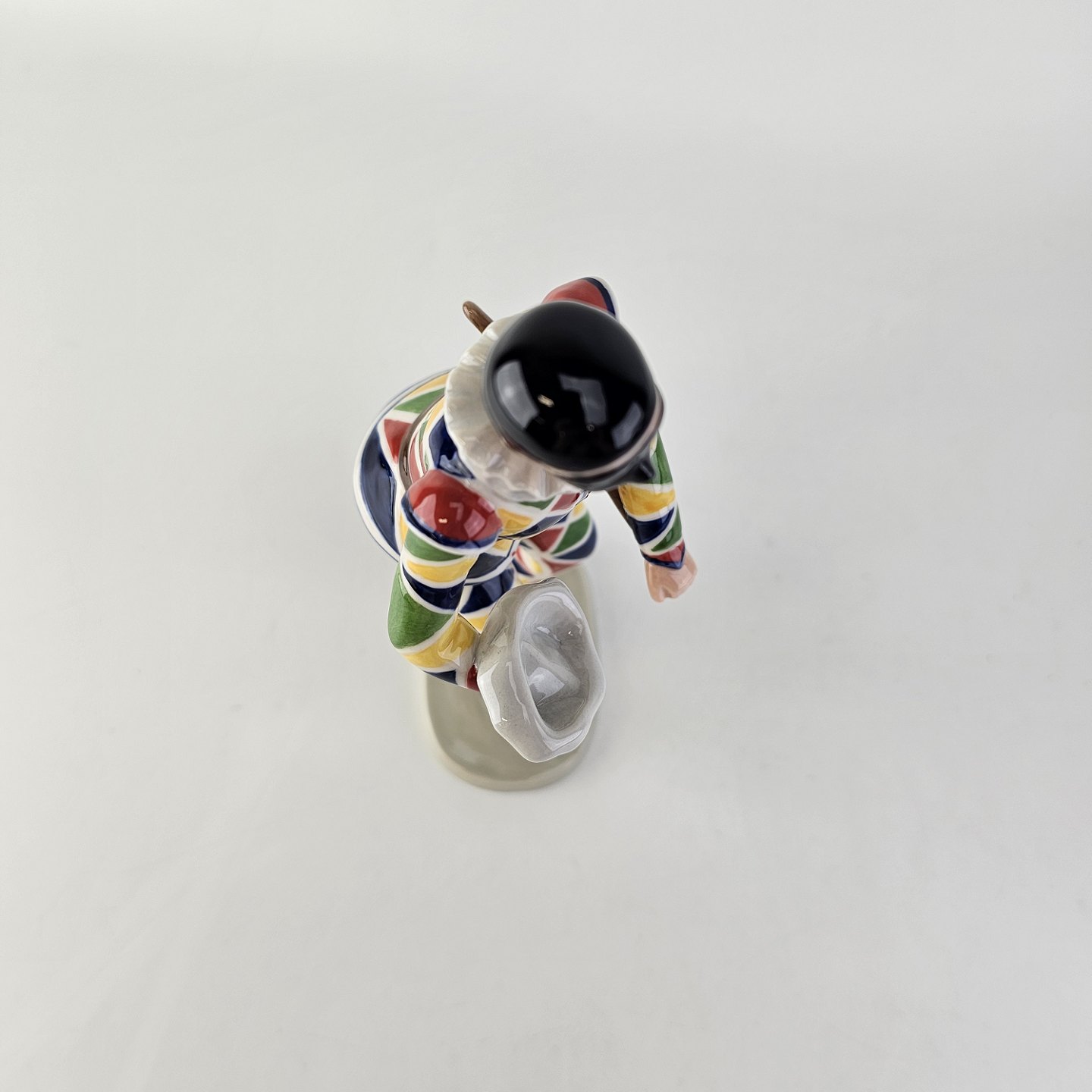 Figur i porcelæn med motiv af Arlecchino fra La Commedia dell'Arte Italiana