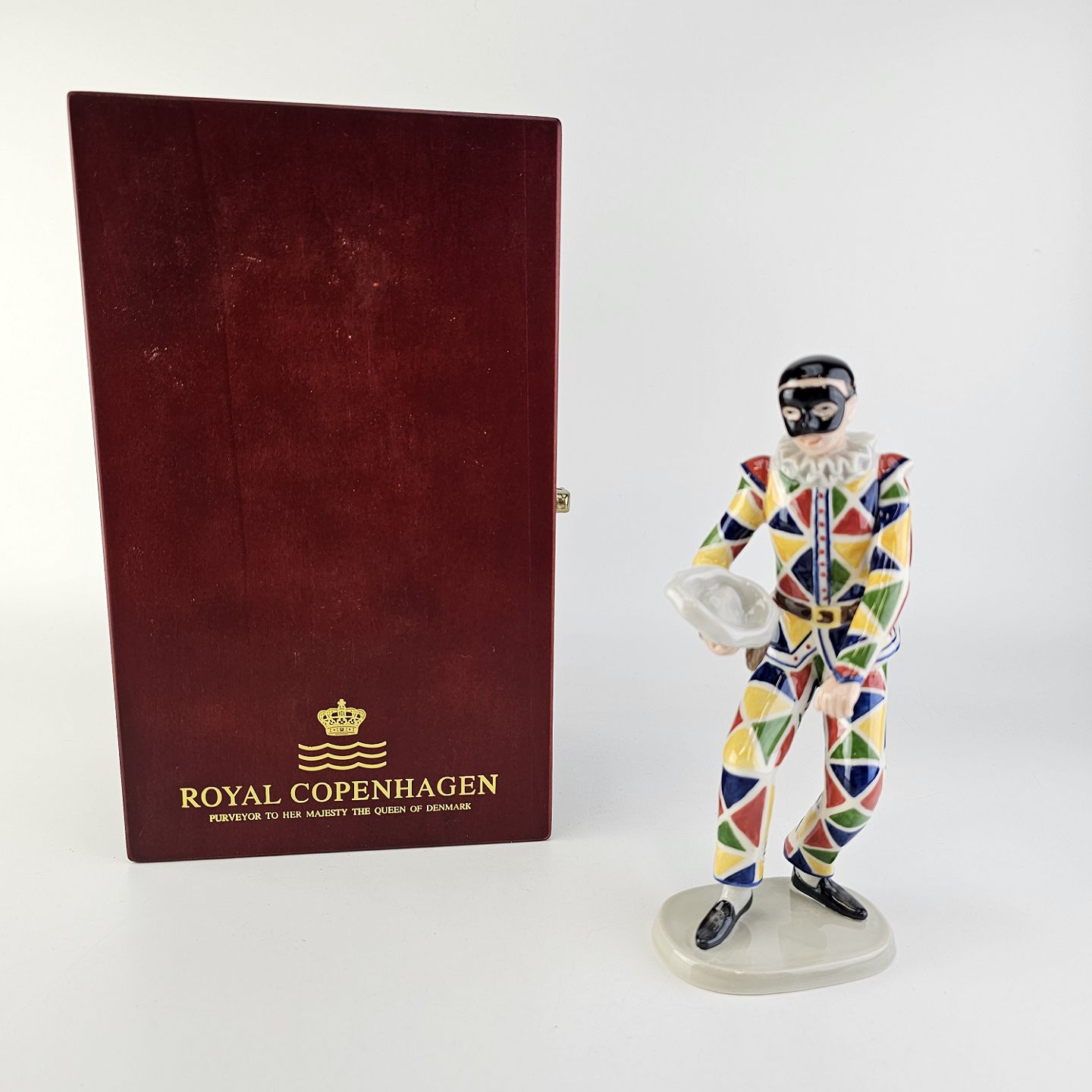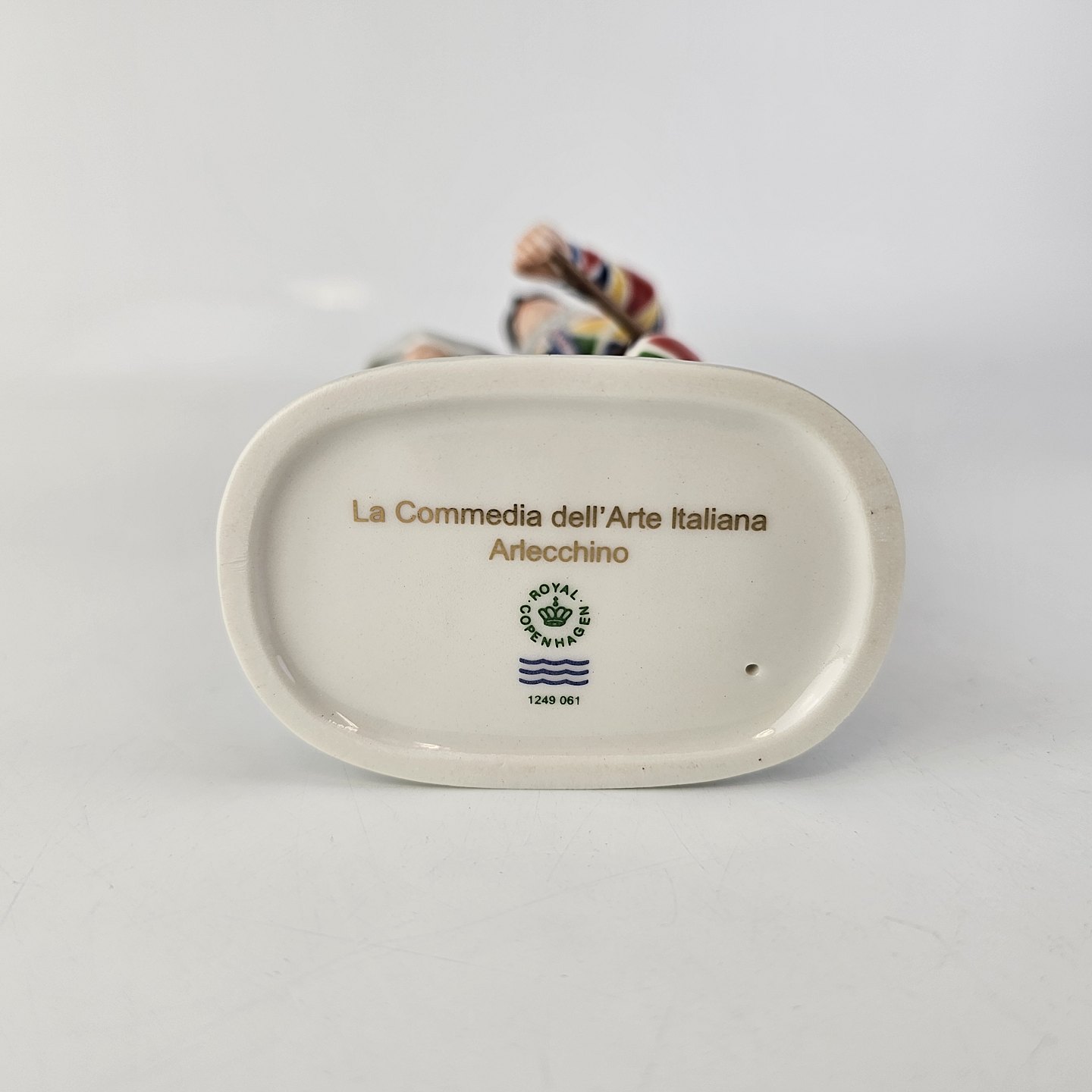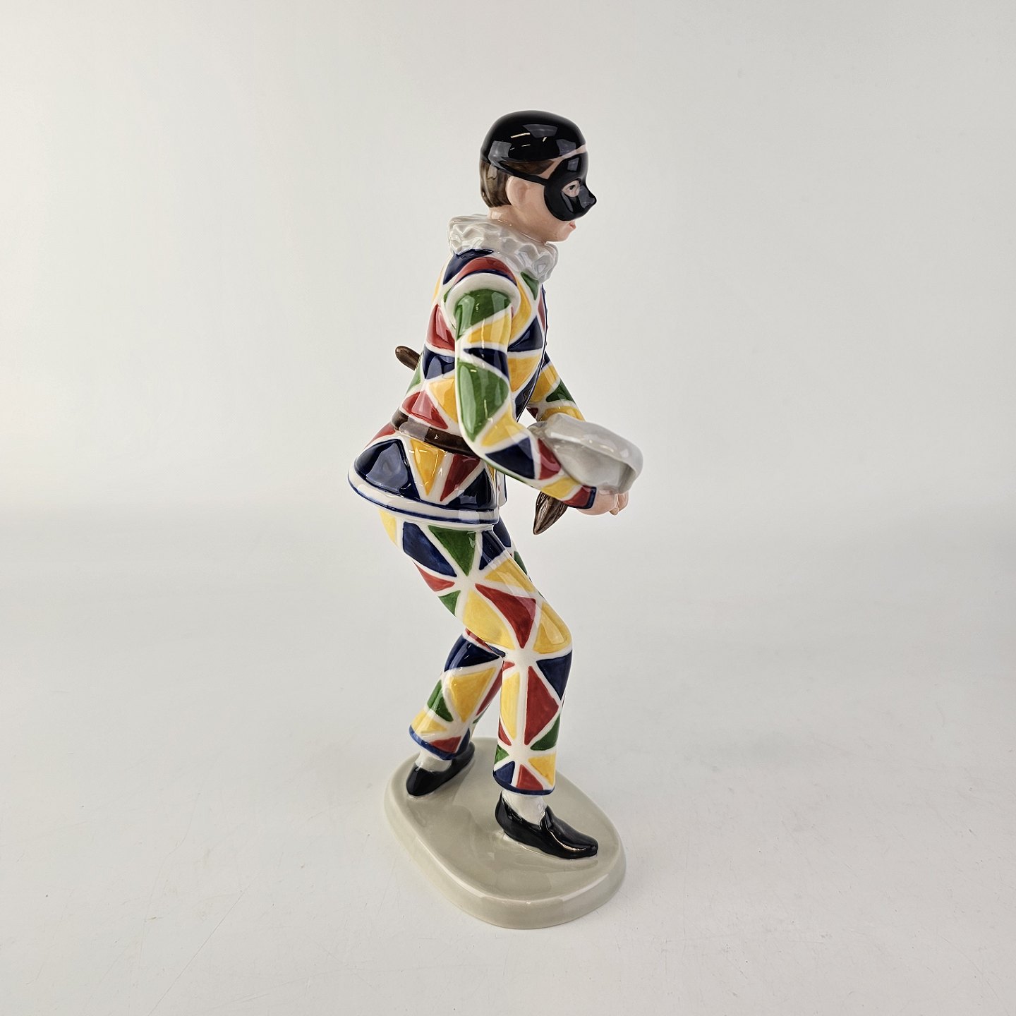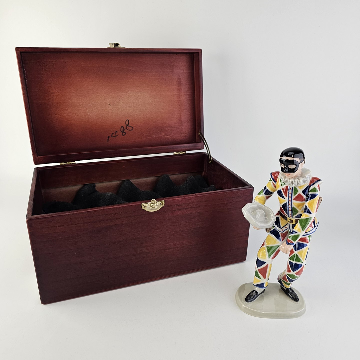 Figur i porcelæn med motiv af Arlecchino fra La Commedia dell'Arte Italiana