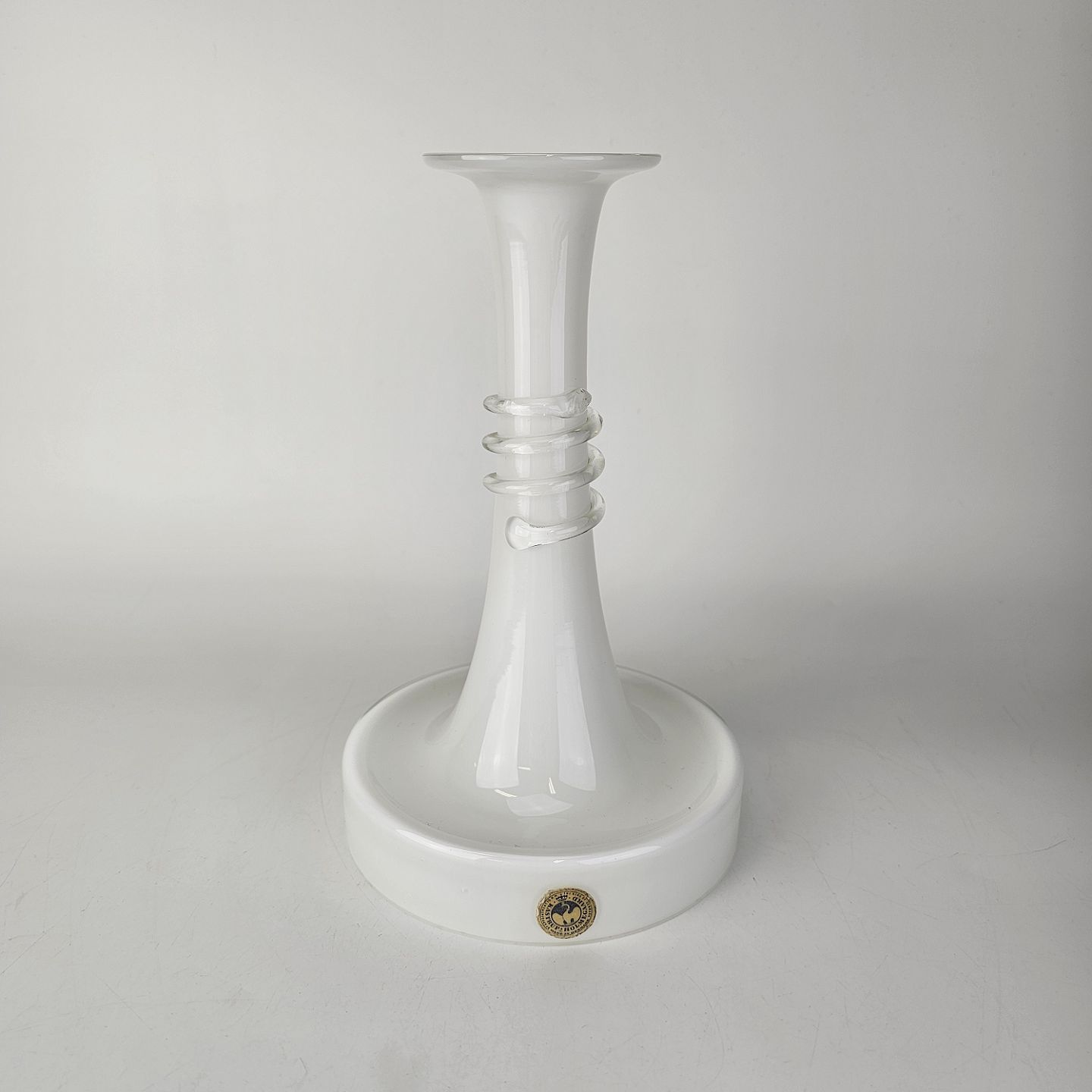 Lysestage i hvidt opalglas omviklet med en klar glastråd fra serien Napoli