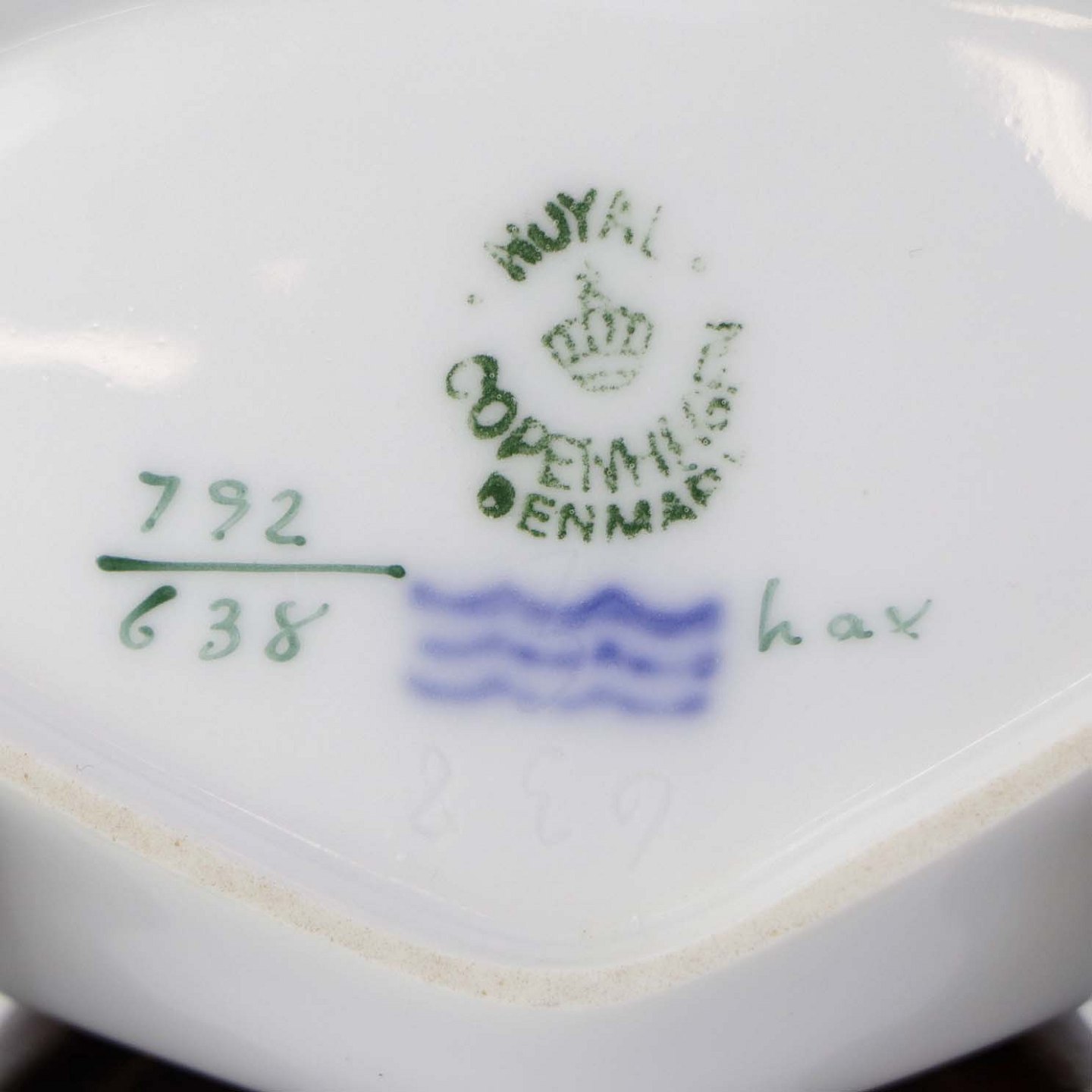 Muslingeformet asiet i kongelig porcelæn fra stellet Jægersborg. Nr. 792/638