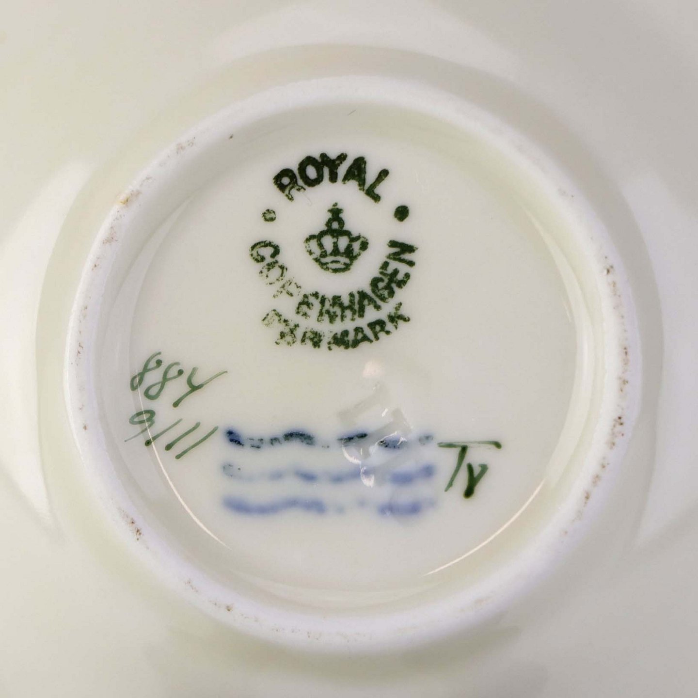 Lille skål til kaviar i kongelig porcelæn fra stellet Hjertegræs. Nr. 884/9111