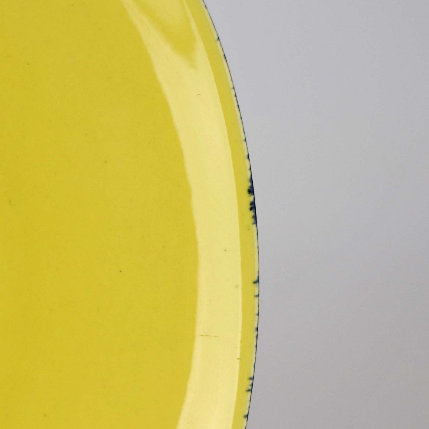 Fremstår med mindre ridser samt lidt ujævnhed ved kanten.