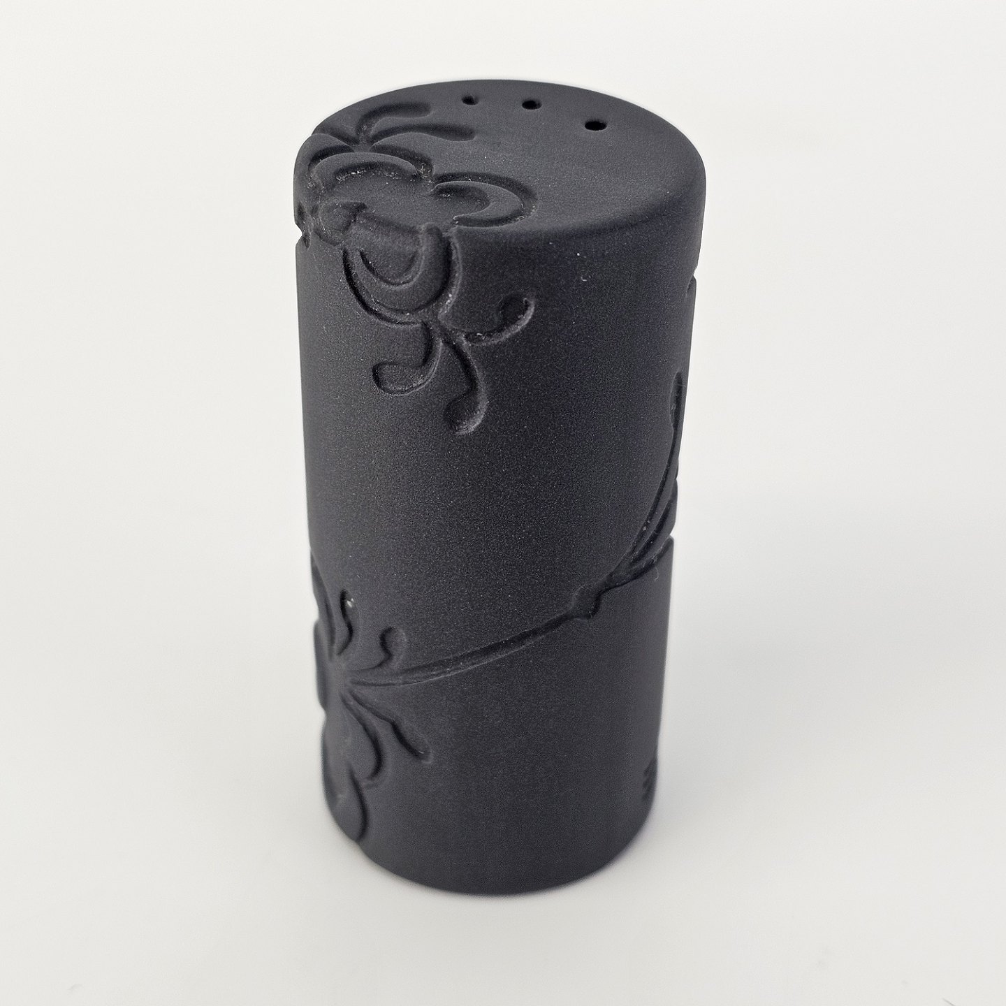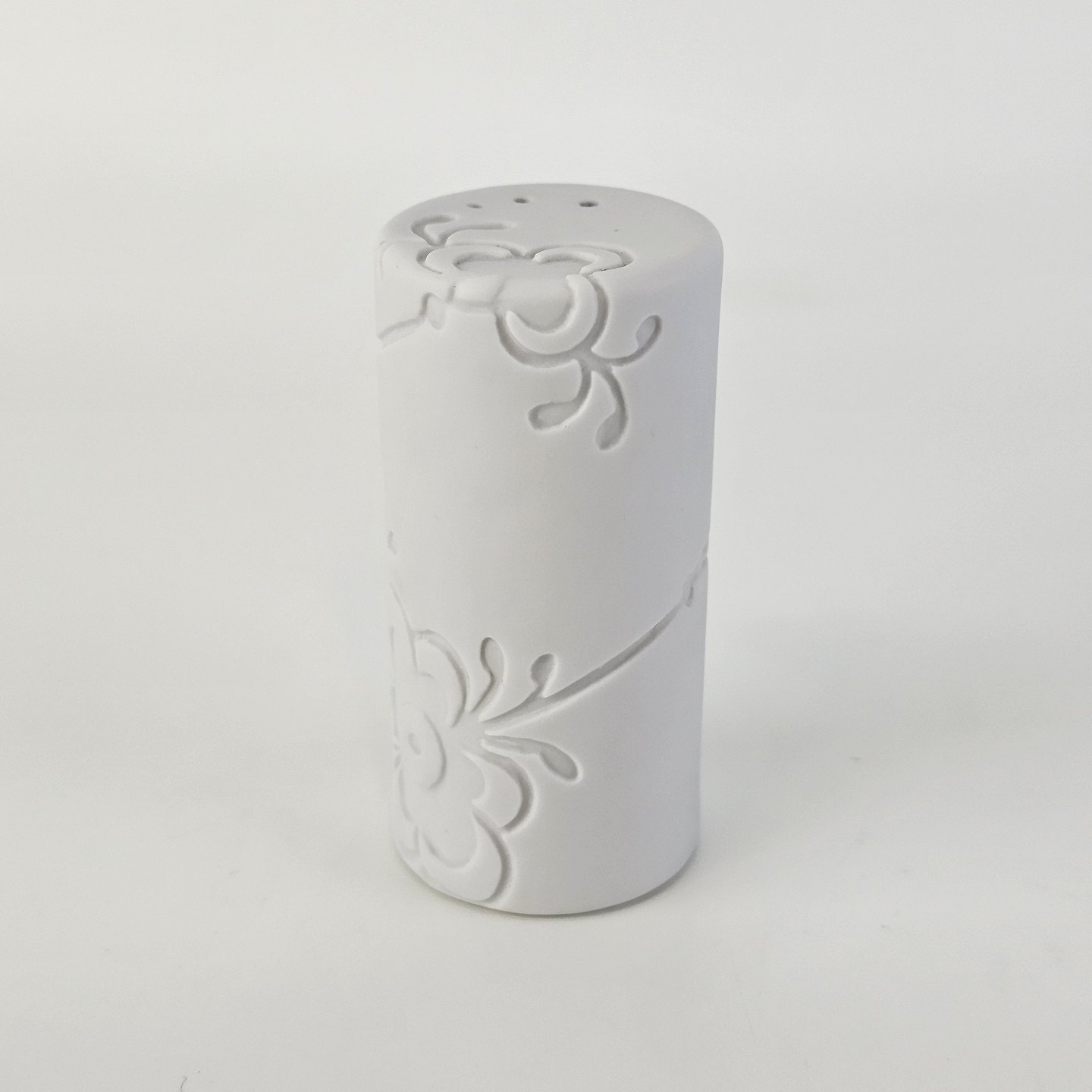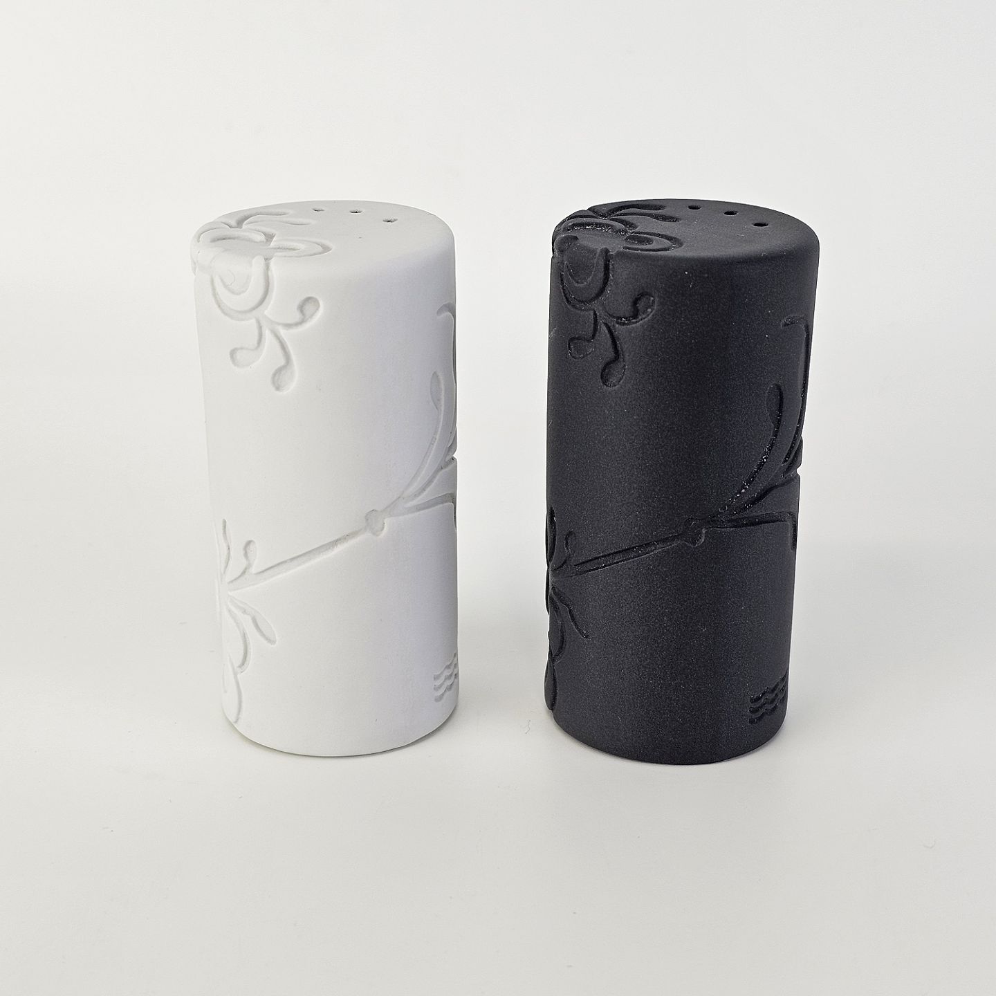 Salt og peber sæt i kongeligt porcelæn med mega mussel dekoration, en sort og en hvid