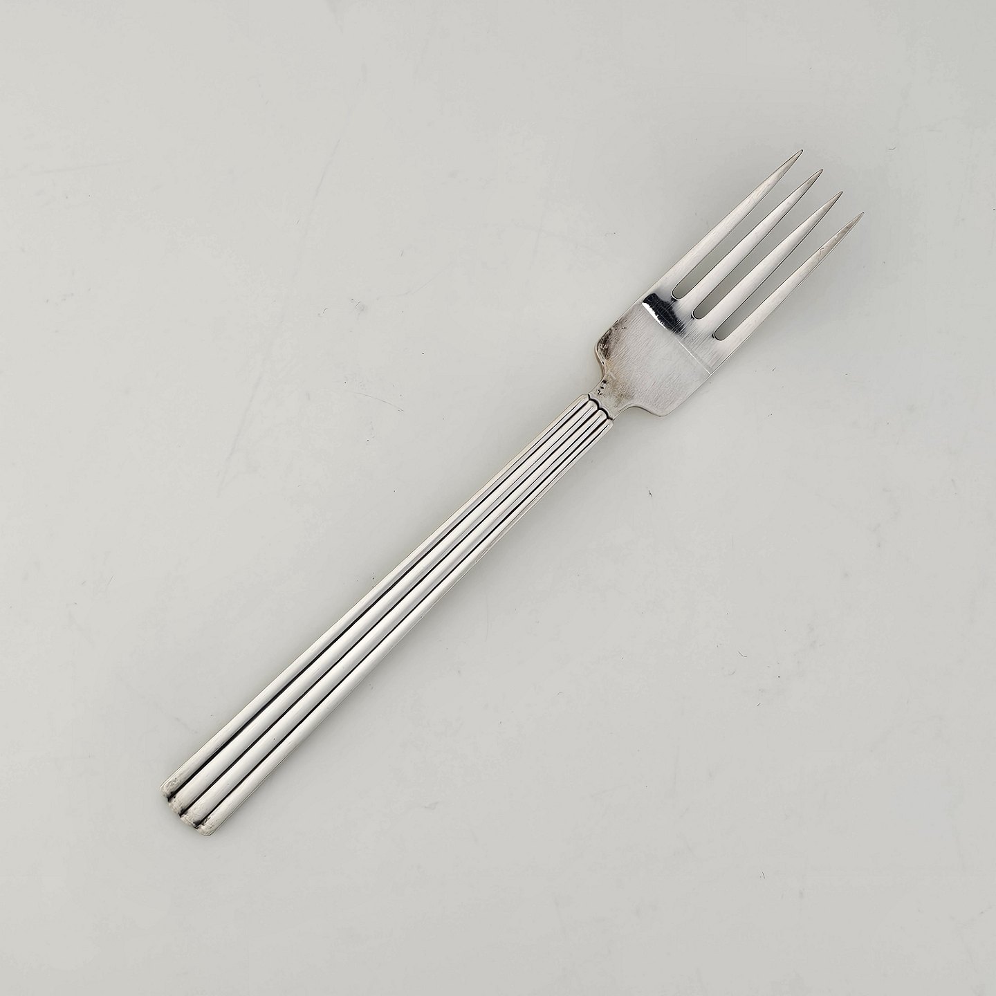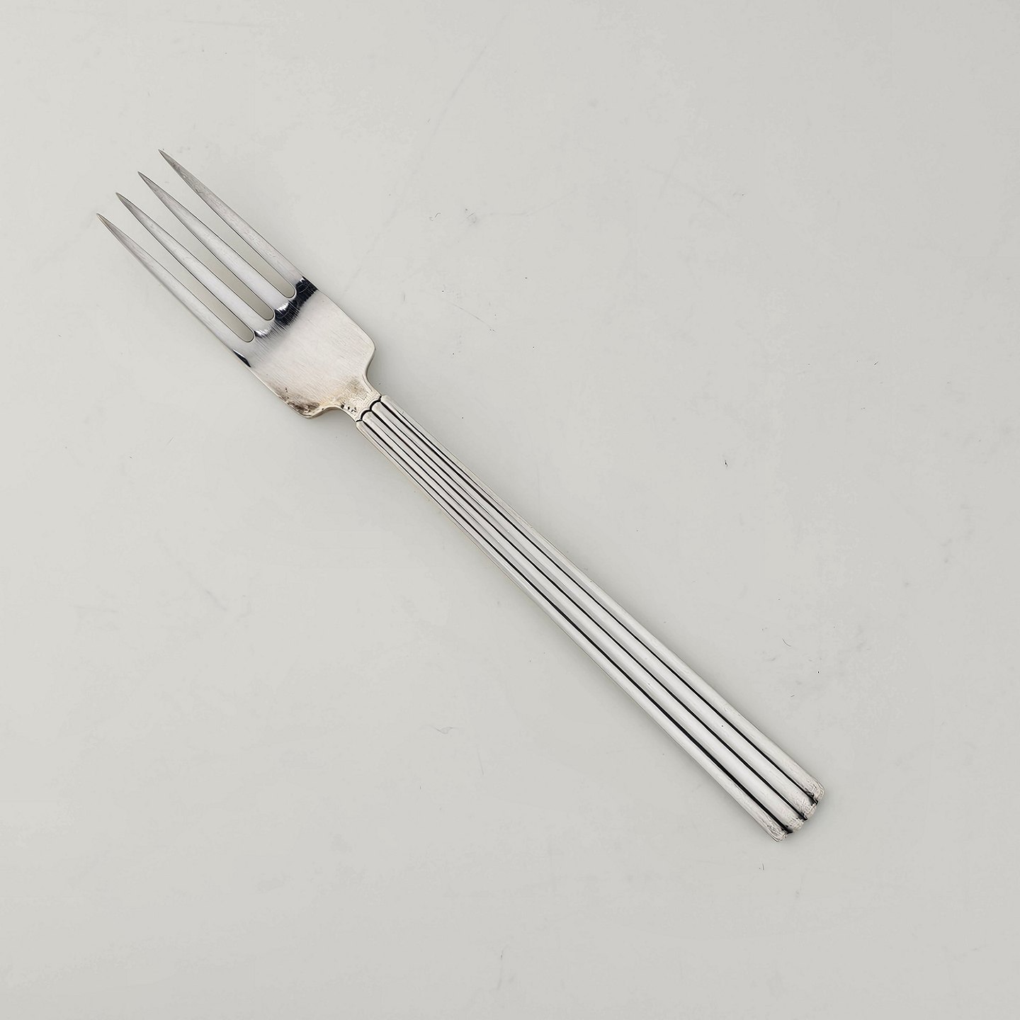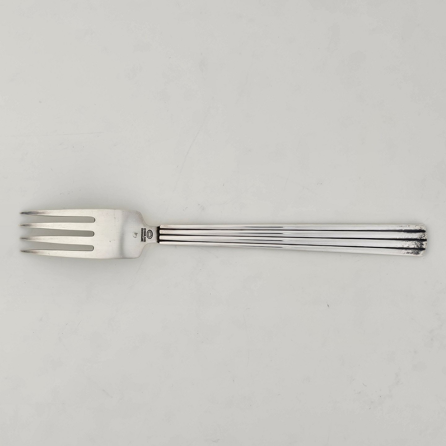 Barnegaffel i sterling sølv skaft dekoreret med striber