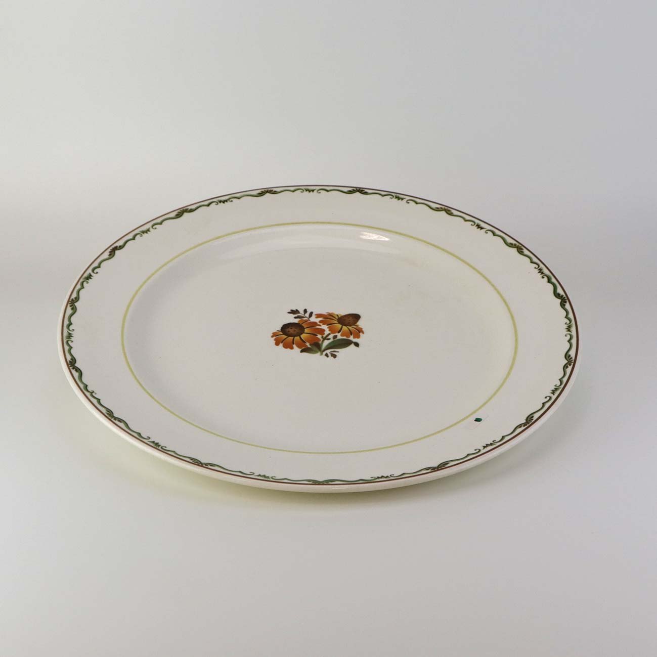 Rundt serveringsfad i fajance fra stellet Solbrud fremstillet i perioden 1937-1967