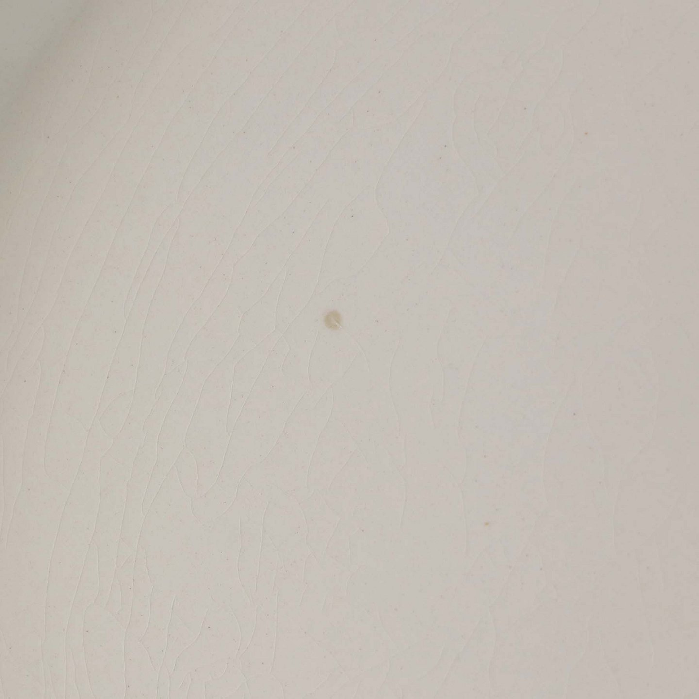 Fremstår med ujævnhed i glasuren og krakkeleringer i glasuren.