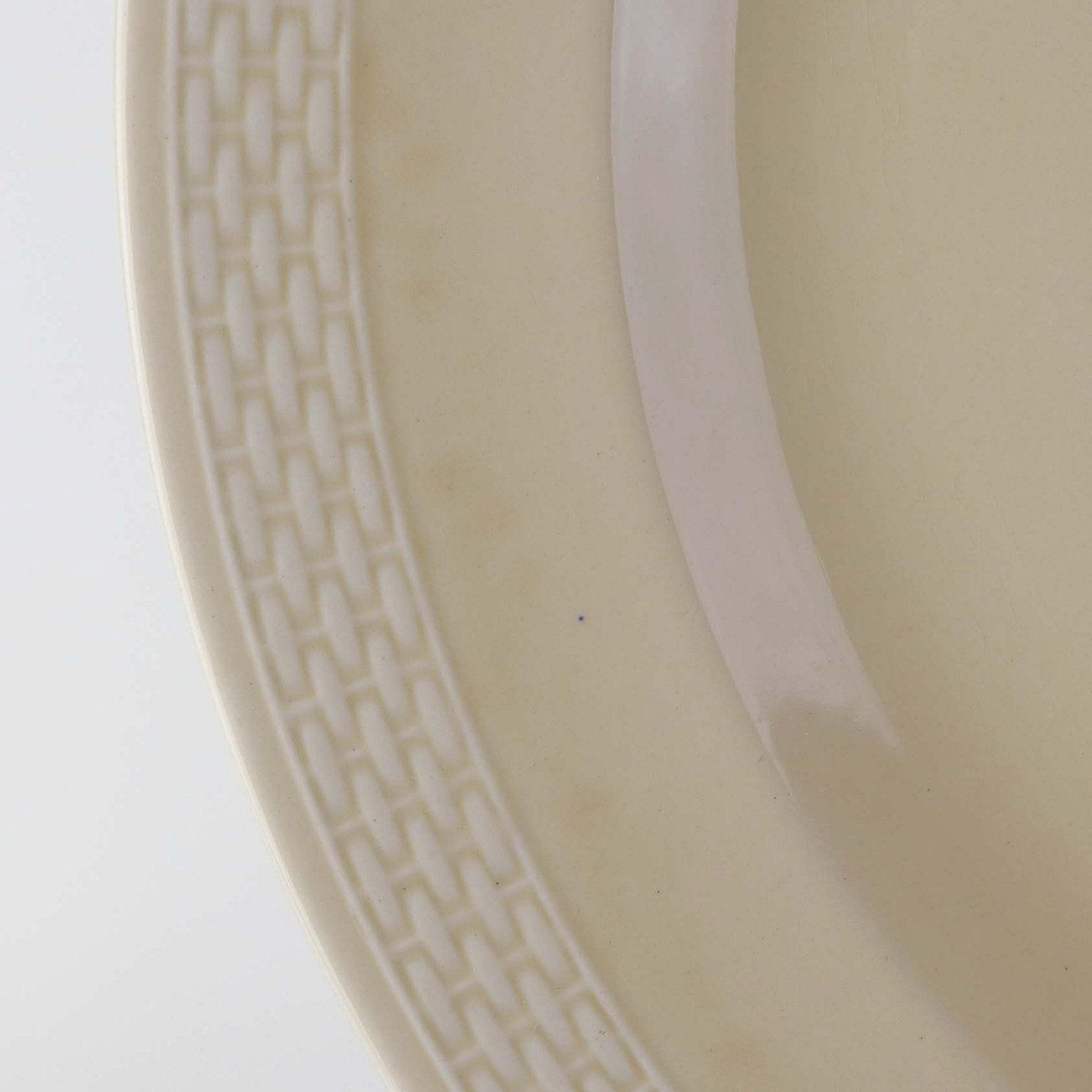 Sandfarvet fajancestel i stelform Viktoria II - Fletværk med dekoration af hvidt flet på gullig baggrund.