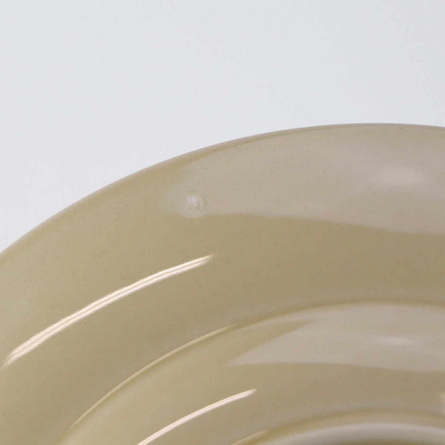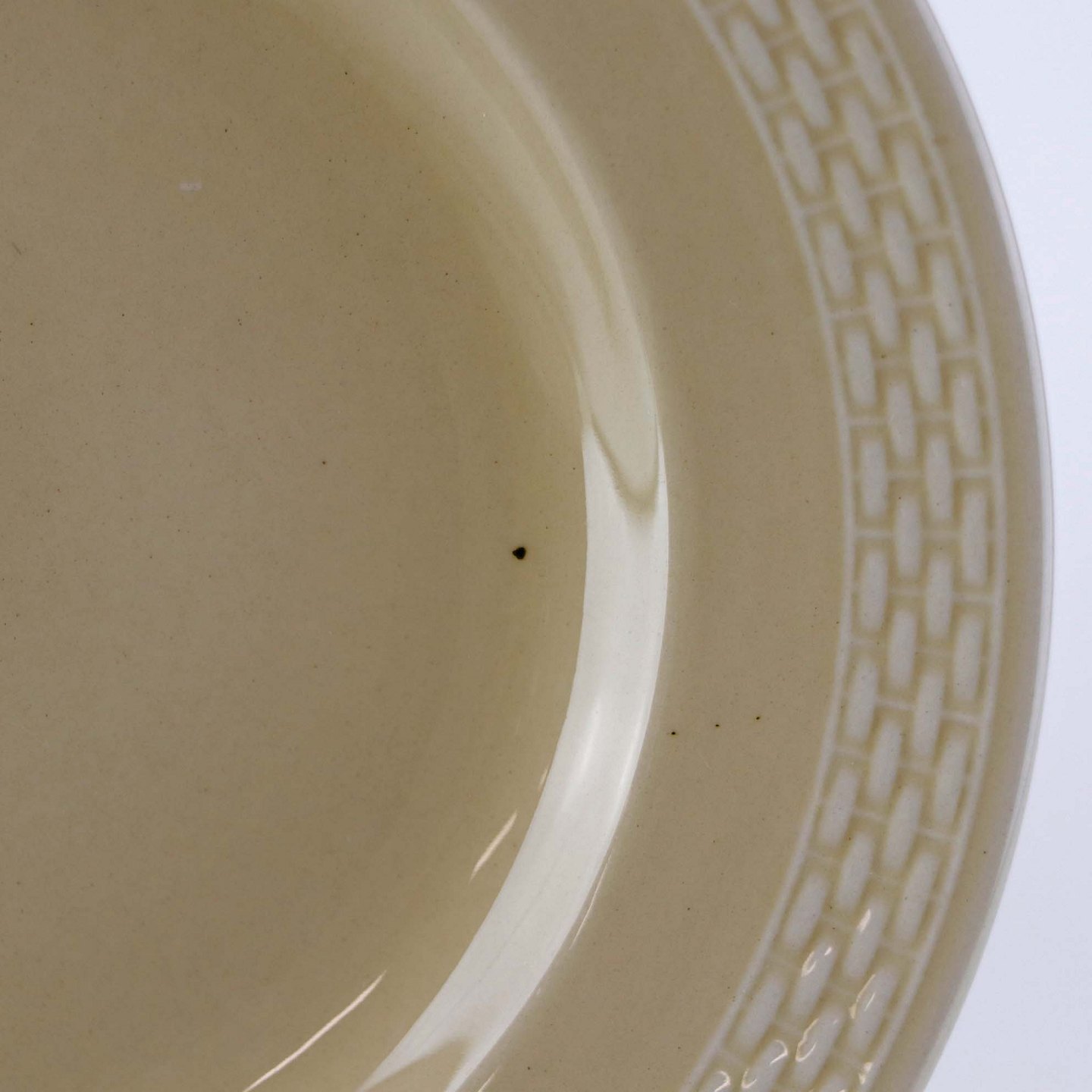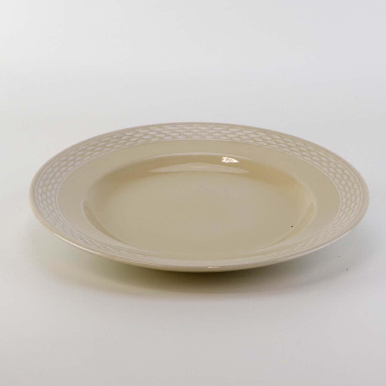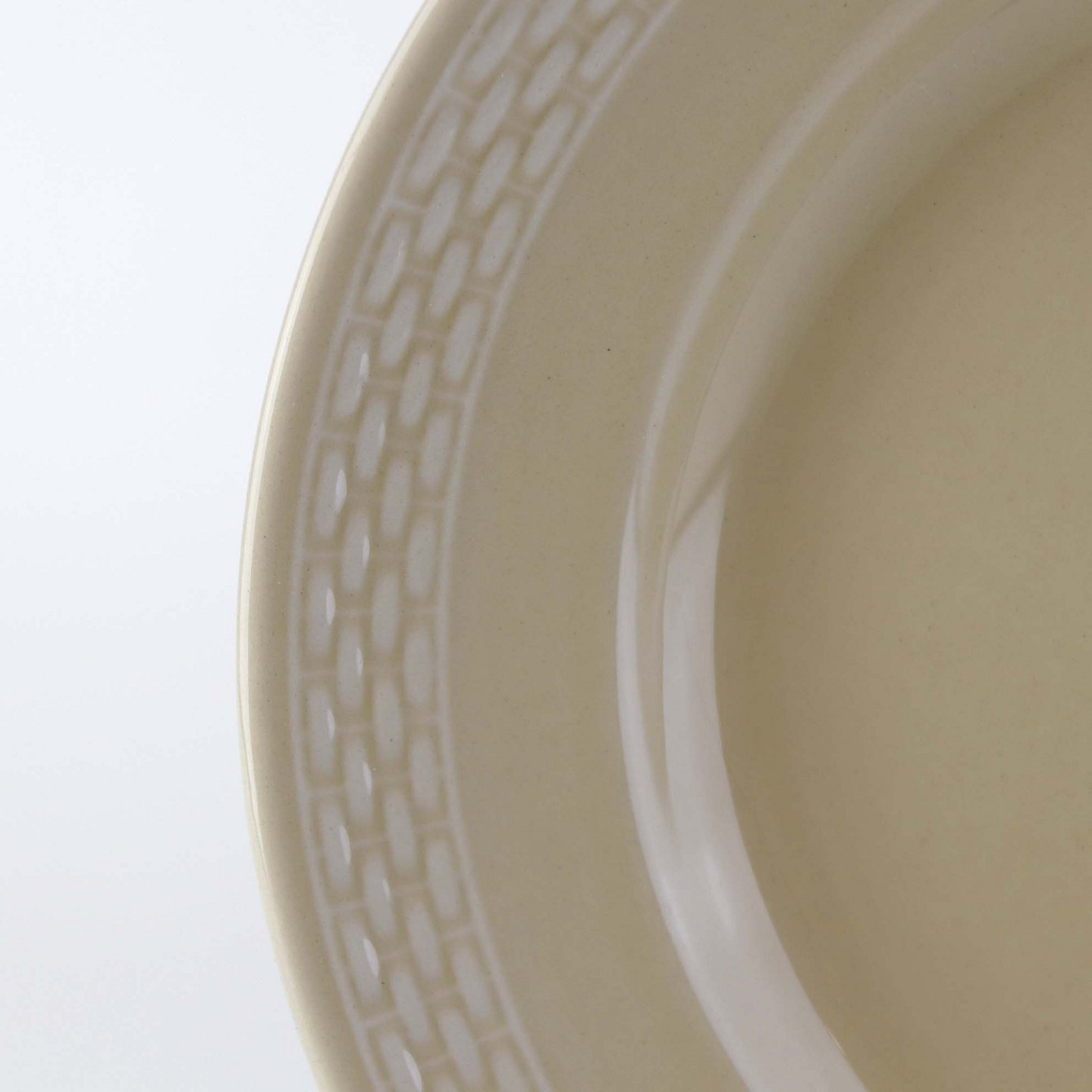 Sandfarvet fajancestel i stelform Viktoria II - Fletværk med dekoration af hvidt flet på gullig baggrund.