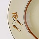 Fajancestel i stelform E med dekoration af egetræsblade og kornaks i brun og orange farve på gul baggrund.
