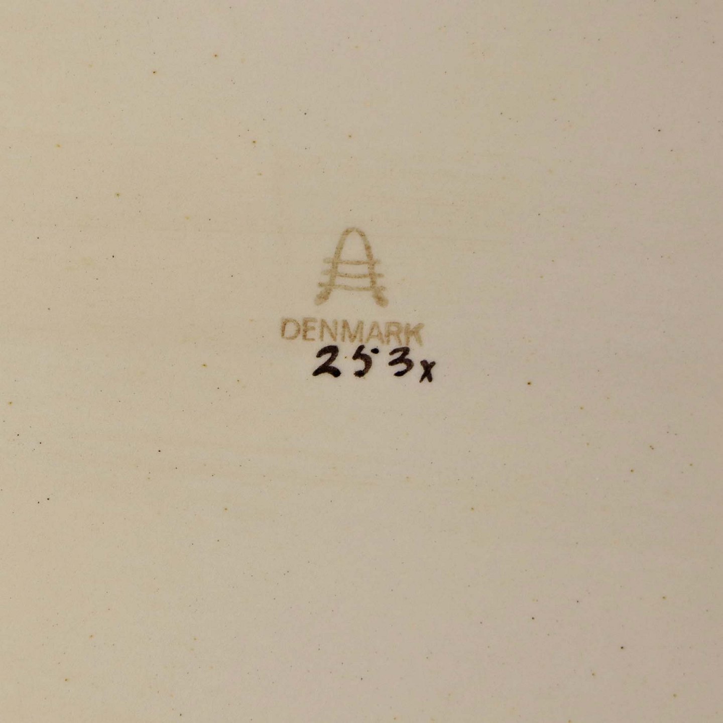 Stor ovalt serveringsfad i fajance fra stellet Åkjær, som blev fremstillet i perioden 1934-1939. Nr. 253