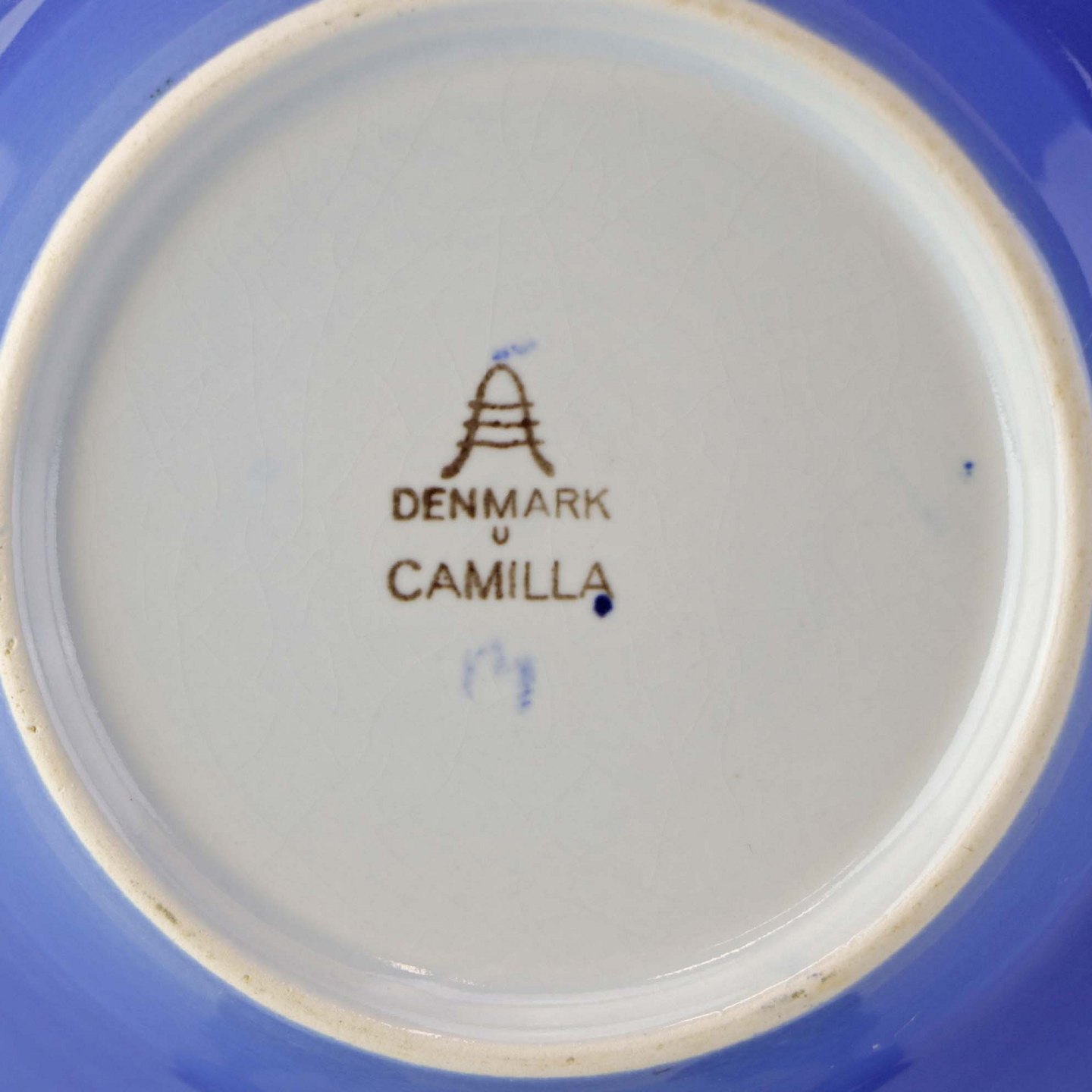 Sovseskål i fajance med fast bund fra stellet Camilla, som blev fremstillet i perioden 1959-1969. Nr. 253