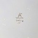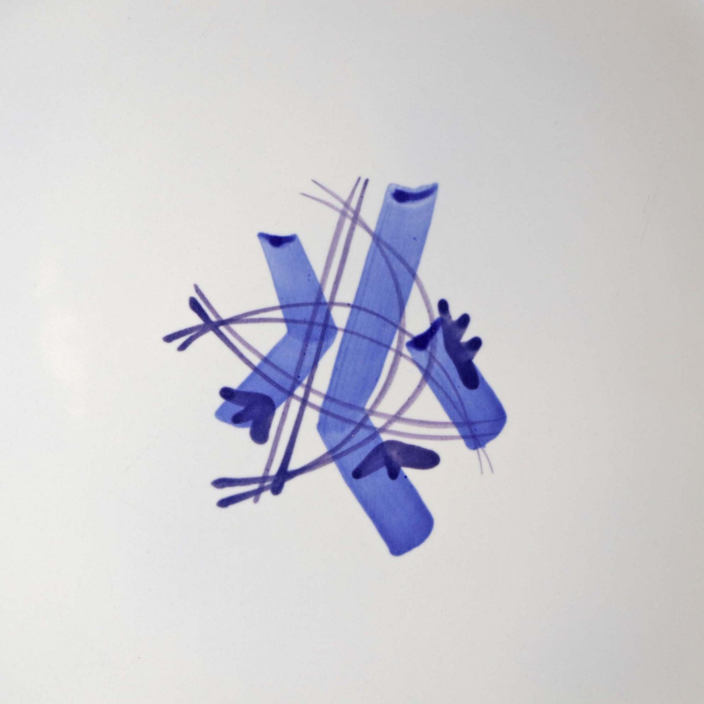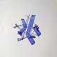 Fajancestel i stelform CA med dekoration af abstrakt motiv i blå og lyseblå på en råhvid baggrund.