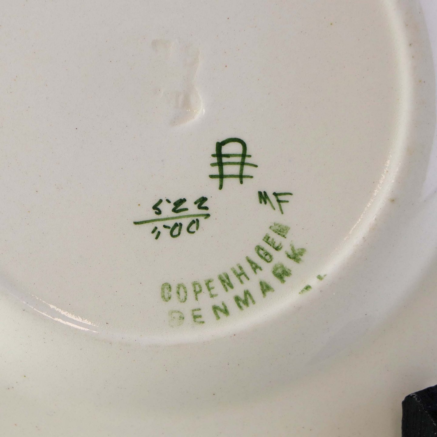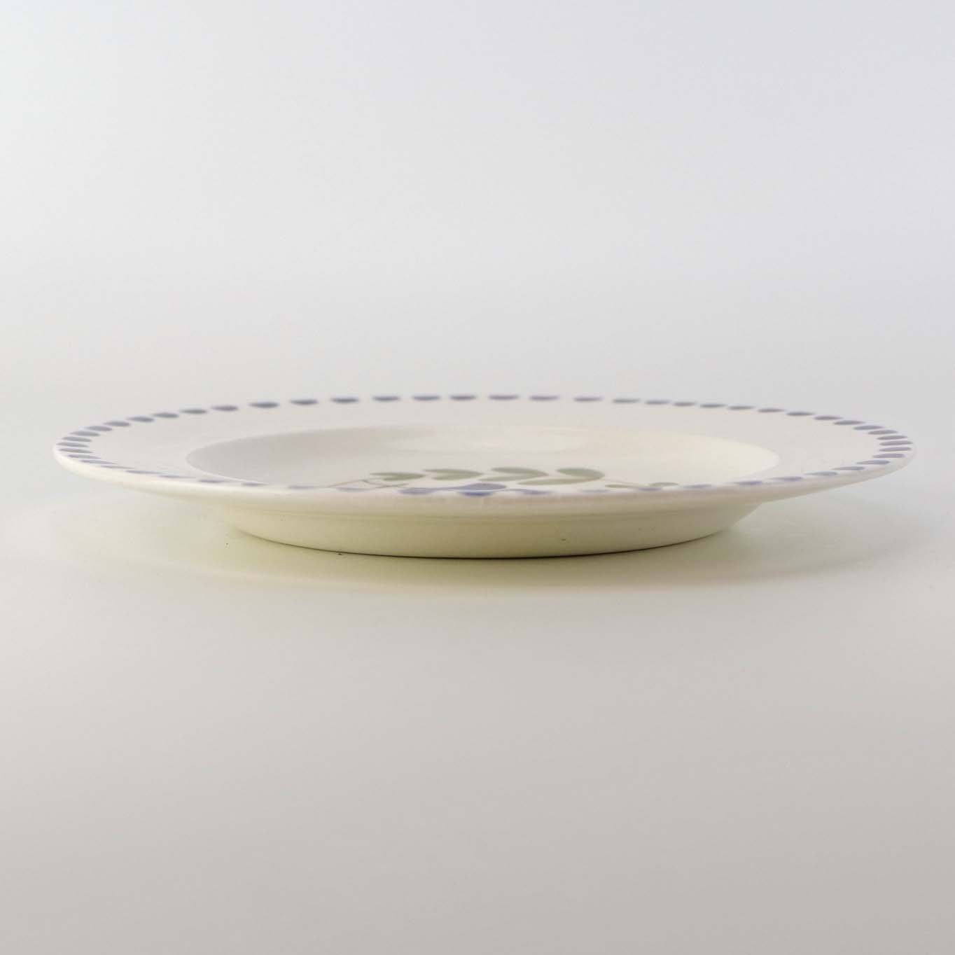 Flad kagetallerken i fajance fra stellet Blåregn. Stellet er fremstillet i perioden år 1903-1933. Nr. 522/500