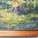 Oliemaleri på lærred med titlen Sommer. Monteret i træramme med motiv af et vandløb i en skov