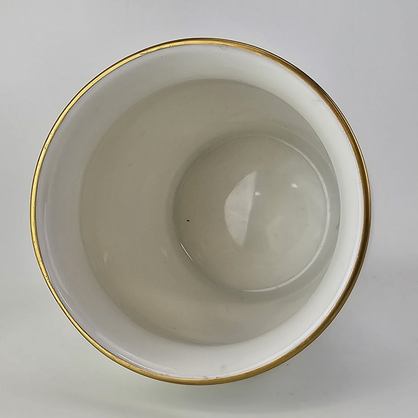 Service i glat hvidt porcelæn med mintblå dekoration og dobbelte guldkanter