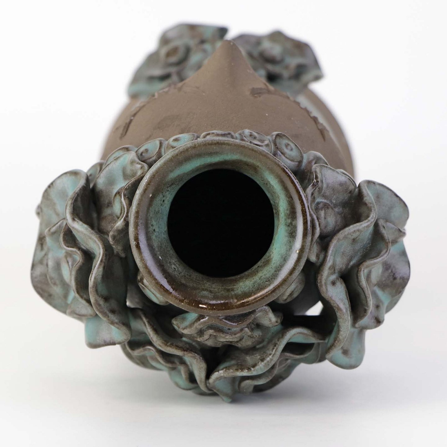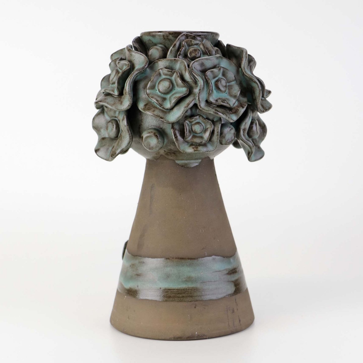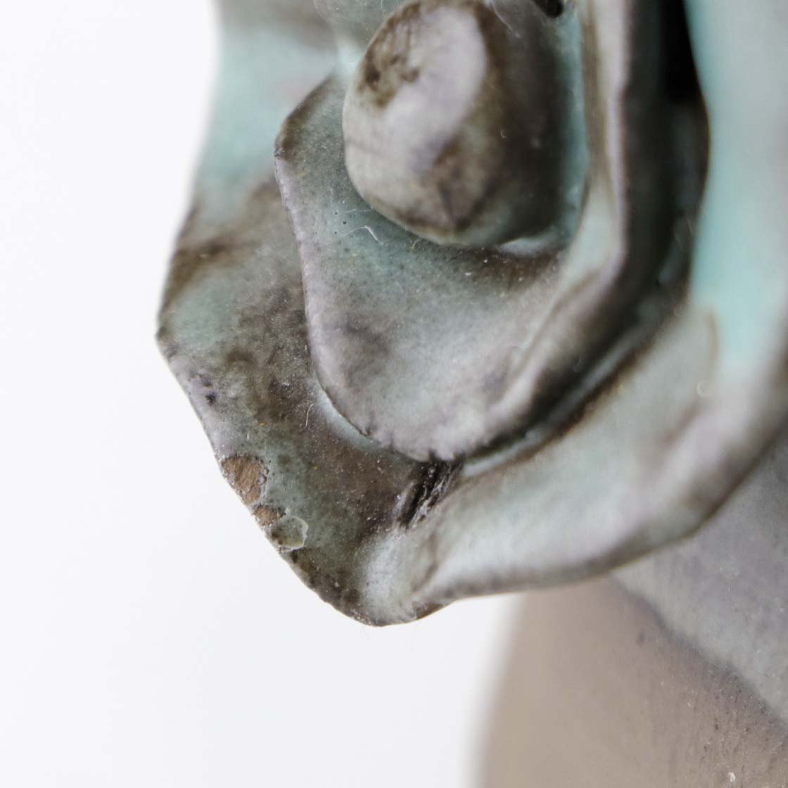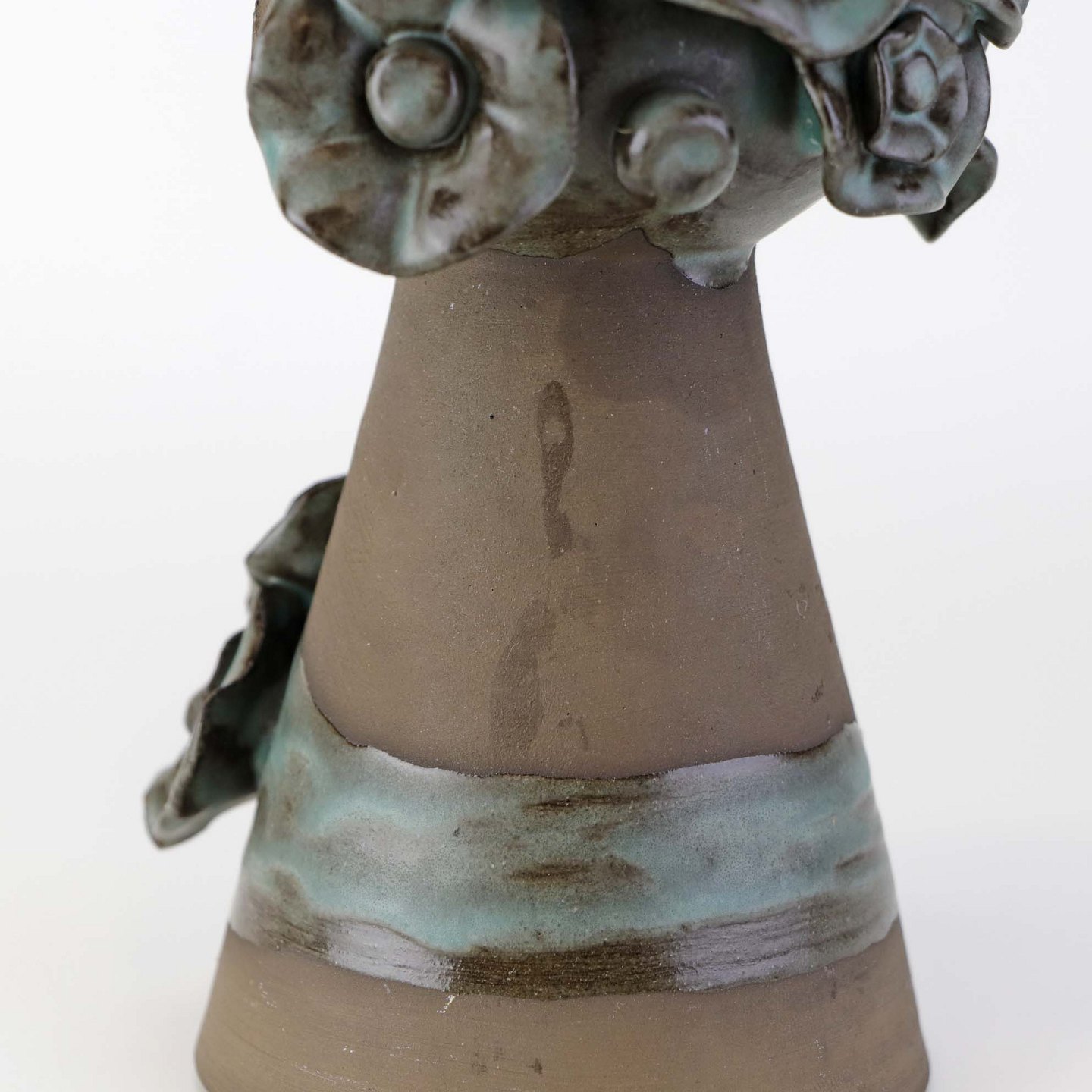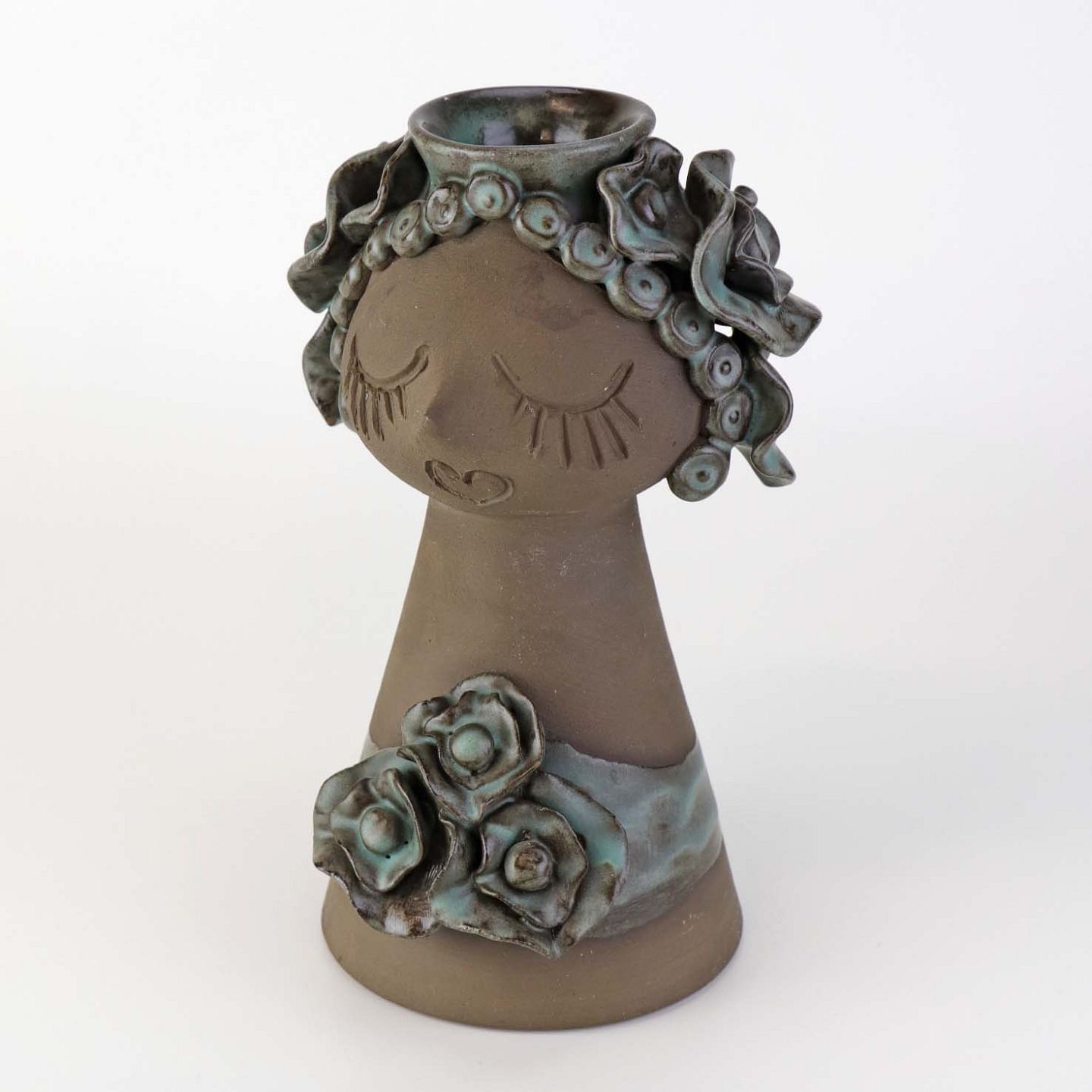 Vase i delvist glaseret keramik med motiv af Thurøpige med grønlig glasur.