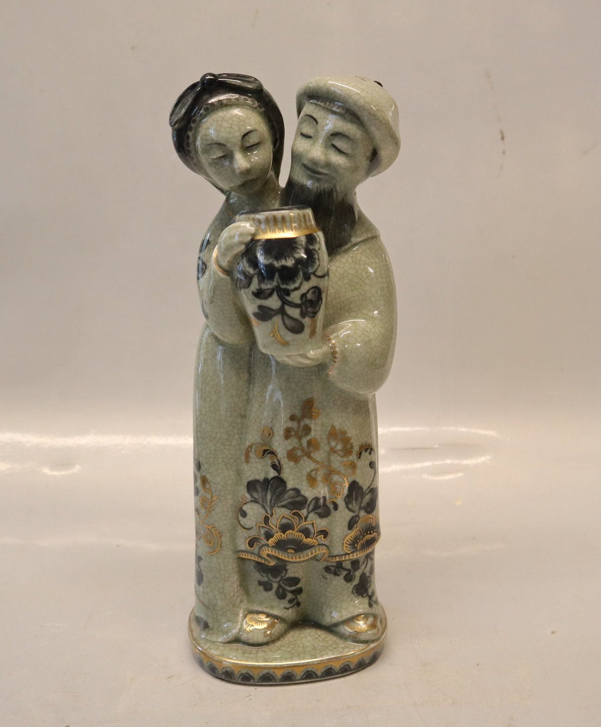 1618 Kinesisk par med krukke 25 cm Georg Thylstrup Grøn Craquelé