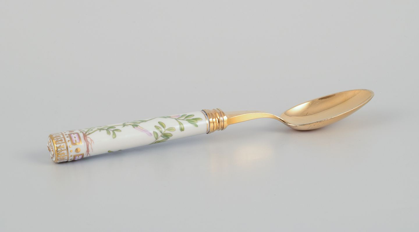 Royal Copenhagen Flora Danica/Georg Jensen. Dining spoon, hand-painted with Flora Danica motif. Handle by Georg Jensen in gilt sterling silver.