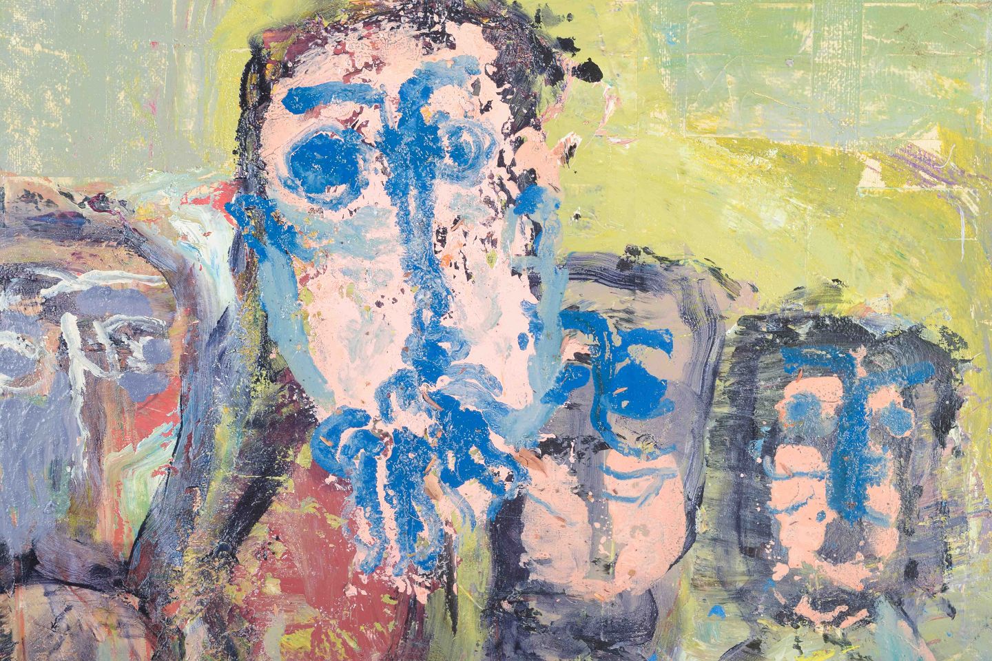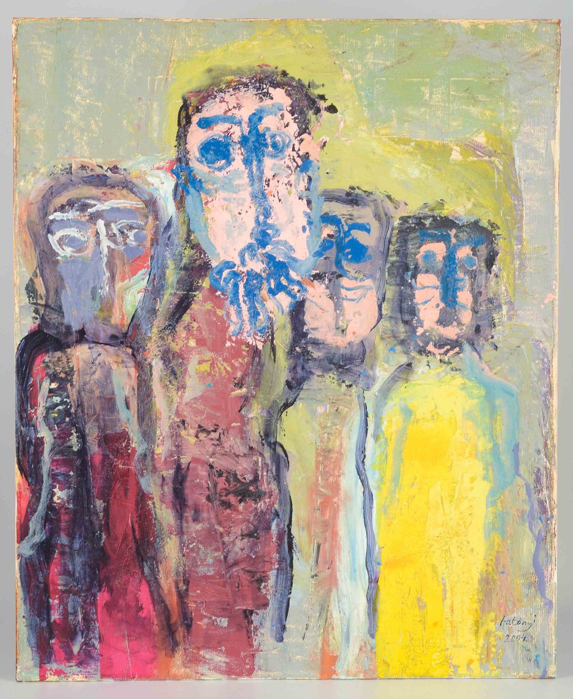 Et ekspressivt maleri af den ungarsk-svenske kunstner Imre Antonÿi. Værket viser en gruppe stiliserede figurer i stærke farver og med kraftige penselstrøg, der skaber en intens og vibrerende atmosfære.