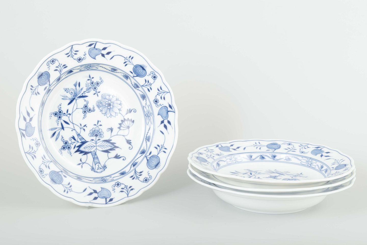 4 soup plates, “Blue Onion” pattern, mid-20th century.