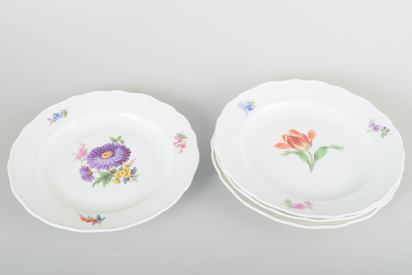 Condition: Very good condition with minor signs of use. One plate is 1st quality, three cancelled with two incised lines. All plates marked with Meissen crossed swords.